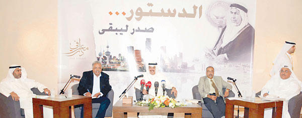 شدد المتحدثون في ندوة دار معرفي، التي كانت تحت عنوان «الدستور... صدر ليبقى» على أن التمسك بالدستور أساس لإقامة الدول، موضحين نشأة الدستور الكويتي.أكد د. غانم النجار أن هذه الفترة تشهد العديد من الأنشطة الخاصة بالدستور، وأن كثرة هذه الأنشطة هي دليل على وجود خوف مبرَّر ومشروع، نظرا إلى الحالة التي نعيشها، التي تشير إلى وجود مؤشرات واحتمالات للانقضاض على الدستور بطريقة تؤدي إلى القبول بالتردي والترهل في الممارسة السياسية.
