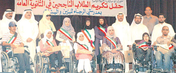 وأشار الكندري في تصريح للصحافيين أمس، خلال حفل تكريم المتفوقين في مدرستي الرجاء (بنين وبنات) من خريجي المرحلة الثانوية، الذي نظمته إدارة مدارس التربية الخاصة، إلى أن الدرجات لطلبة الثاني عشر كانت توزع وفق النظام السابق بواقع 25 في المئة لأعمال السنة، و75 في المئة لاختبار نهاية العام الدراسي، وهذا كان يربك الطالب ويرهقه كثيرا.وبين أن النظام الجديد يوزع نسبة الـ 75 في المئة على ثلاث سنوات، بحيث تخصص نسبة 32 في المئة لاختبارات نهاية العام الدراسي، بينما بإمكان الطالب أن يحصد نسبة 68 في المئة طوال أيام دراسته، وهذا يحفظ له الجهد الذي يبذله على مدى ثلاث سنوات دراسية.وأوضح الكندري أن نسبة النجاح في الصف الثاني عشر في مراكز تعليم الكبار لذوي الاحتياجات الخاصة بلغت 100 في المئة بالنسبة إلى القسم العلمي، في حين بلغت 89 في المئة لطلبة القسم الأدبي، مبينا أن 30 طالبا وطالبة تخرجوا هذا العام في مدارس التربية الخاصة، لافتا إلى أن نسبة النجاح هذا عام 100 في المئة لمراكز تعليم الكبار، و100 في المئة للتربية الخاصة، و88 في المئة للقسم العلمي، و90 في المئة للقسم الأدبي للصف الثاني عشر.فصل المدارس ولفت الكندري إلى أن العام الدراسي القادم سيشهد فصل مدرستي النور والأمل (بنين وبنات) عن مدرسة الرجاء ليتسنى للطلاب والطالبات المكفوفين تلقي العناية التي يطمحون إليها، كما يجري تطوير مباني ومنشآت مدارس التربية الخاصة، وكذلك تطوير مناهج الورش التعليمية التي تدرس للطلبة الصم، بالإضافة إلى طباعة جميع الكتب الخاصة بالطلبة المكفوفين (برايل) في مطبعة النور التابعة للإدارة، مع توفيرها للطلبة قبل مطلع سبتمبر المقبل، معربا عن أمله في أن يرى مجمعا التربية الخاصة في منطقتي الفنطاس والجهراء النور قريبا، وكذلك الإسراع في دمج الإعاقات البسيطة والحركية في مدارس التعليم العام لإذابة الحاجز النفسي بين الطلبة المعاقين وكل أفراد المجتمع.وعبر الكندري عن سعادته البالغة بتخريج الدفعة الأولى من الطلبة الدارسين وفق النظام الثانوي الموحد، وحصول ذوي الاحتياجات الخاصة منهم على مراكز متقدمة، مبينا أن الطالبة هيام سيد أحمد من مدرسة الرجاء بنات حصلت على نسبة 96.18 في المئة، مما يدل على قوة إرادتها وصبرها وتحديها لإعاقتها وبذلها جهدا كبيرا للوصول إلى التفوق.وأكد أن الكويت فخورة بهؤلاء الطلاب والطالبات الذين أثبتوا للمجتمع أنهم قادرون على العطاء ومشاركة إخوانهم من خريجي التعليم العام في المحافل المختلفة، مثمنا جهود أولياء أمورهم ومعلميهم والإدارات المدرسية التي أثمرت هذا الإنتاج المميز الذي يحق للجميع الفخر به.وأعرب عن أمله في أن يراعى تخفيض نسب القبول في جامعة الكويت للطلبة المعاقين، وأن تتم زيادة عدد المقاعد المخصصة لهم في البعثات المحلية والخارجية، متمنيا لهم التوفيق في حياتهم الجديدة وأن يراهم بعد 4 أو 5 سنوات متخرجين في الجامعات لتفخر بهم بلدهم.لجنة بعثاتوأضاف الكندري هناك لجنة للبعثات خاصة بالطلبة المعاقين بالتنسيق مع المجلس الأعلى للمعاقين تتولى ابتعاث هؤلاء الطلبة سنوياً وفق ضوابط وشروط معينة، آملاً أن تصبح هذه الشروط أكثر سهولة ويسراً.وأعلن افتتاح النادي الصيفي لجميع الطلبة المعاقين وأولياء أمورهم، سواء الخريجون أو المستمرون بالدراسة في مدارس التربية الخاصة، وذلك اعتباراً من الأحد المقبل خلال الفترة المسائية، داعياً الجميع إلى الالتحاق بالنادي والاستفادة من الأنشطة الترفيهية والرياضية والتربوية التي تقدّم لمرتاديه.