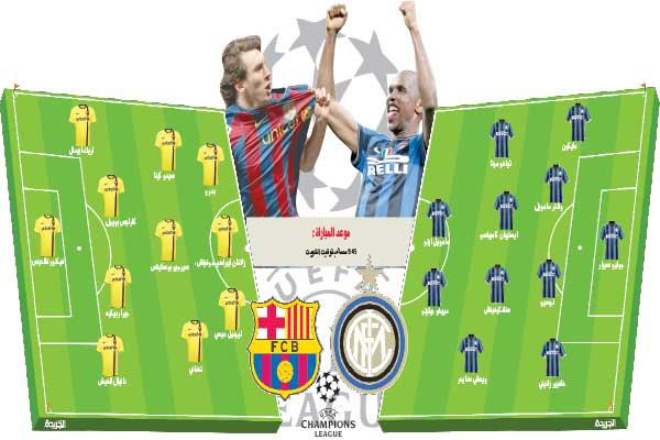 يحل برشلونة الإسباني ضيفاً على إنتر ميلان الإيطالي اليوم الثلاثاء في ذهاب الدور نصف النهائي من مسابقة دوري أبطال أوروبا لكرة القدم.