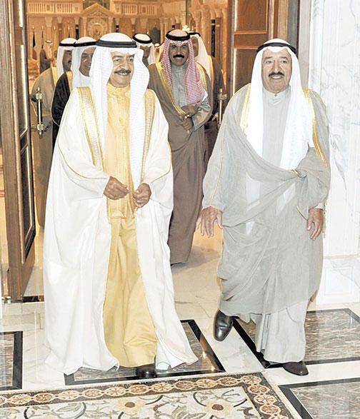 استقبل سمو أمير البلاد الشيخ صباح الأحمد بقصر بيان أمس، بحضور سمو ولي العهد الشيخ نواف الأحمد وسمو الشيخ ناصر المحمد رئيس مجلس الوزراء، الأمير خليفة بن سلمان آل خليفة رئيس وزراء مملكة البحرين والوفد المرافق له، وذلك بمناسبة زيارته الرسمية للبلاد .وتم خلال اللقاء تبادل الأحاديث الودية التي عكست عمق العلاقات الأخوية المتميزة بين البلدين الشقيقين وسبل دعم أطر التعاون الثنائي، بما يخدم مصالحهما المشتركة.