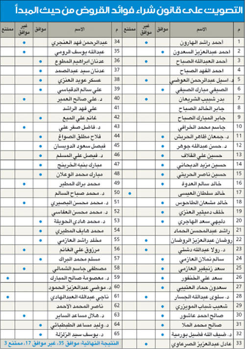 التصويت على قانون شراء فوائد القروض من حيث المبدأ نشر في 24-12-2009 | 00:00 آخر تحديث 24-12-2009 | 00:00