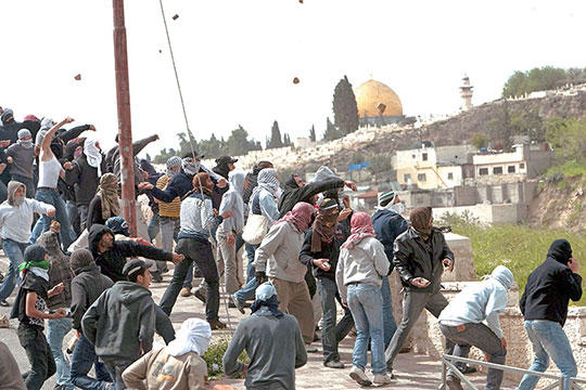 توترت الأوضاع في مدينة القدس أمس، بعد سلسلة قرارات استفزازية اتخذتها الحكومة الإسرائيلية برئاسة بنيامين نتنياهو كان آخرها تدشين كنيس "الخراب" قرب الحرم القدسي.ورغم حظر التجول الذي تفرضه السلطات الإسرائيلية على الضفة الغربية منذ خمسة أيام، نزل أمس، مئات من الشبان الفلسطينيين إلى شوارع الشطر الشرقي من القدس وتواجهوا مع الشرطة الإسرائيلية.