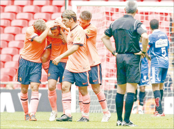 وحملت أهداف برشلونة توقيع بويان كركيتش وخوسيه مانويل رويدا وجوفرن سواريز وبيدريتو رودريجز ليديزما، بينما أحرز هاني العجيزي الهدف الوحيد للأهلي.وكان الأهلي سقط في مباراته الأولى أمام سلتيك صفر- 5، في حين تعادل برشلونة مع توتنهام 1-1.بدأت المباراة بضغط هجومي مكثف من جانب بطل الدوري الإسباني وسط حالة من التراجع التام من لاعبي الأهلي. وأسفر الضغط المتواصل من جانب برشلونة عن تسجيل هدف السبق في الدقيقة 15 عن طريق الصاعد بويان كركيتش، بعدما تلقى تمريرة عرضية خارج منطقة الجزاء ليتوغل بالكرة إلى داخل المنطقة، ويمر من أكثر من مدافع قبل أن يخدع أحمد السيد ويسدد الكرة في أقصى الزاوية اليمنى للحارس أمير عبدالحميد.وأهدر محمد أبوتريكة فرصة إدراك التعادل في الدقيقة 25 بعدما تلقى تمريرة عرضية رائعة من أحمد فتحي، ولكن تسديدته الرأسية ذهبت مباشرة في أحضان الحارس، وكاد أحمد علي أن يحرز هدفا رائعا للأهلي في الدقيقة 27، ولكن تسديدته القوية مرت مباشرة بجوار القائم الأيمن لمرمى برشلونة.وأعلنت الدقيقة 31 هدف التعادل للأهلي، بعدما خاض أحمد علي مشوارا طويلا من منتصف الملعب قبل أن يمرر كرة سحرية إلى هاني العجيزي الذي نجح في مراوغة الحارس، وسجل أول أهداف فريقه في البطولة.وأضاف رويدا الهدف الثاني لبرشلونة بعدما راوغ الدفاع، وأطلق قذيفة صاروخية من خارج منطقة الجزاء ذهبت مباشرة داخل شباك أمير عبدالحميد.ومع بداية الشوط الثاني، لجأ جوسيب غوارديولا، مدرب برشلونة إلى كتيبة نجومه ودفع بميسي ويايا توريه وفيكتور فالديز.وجاء الهدف الثالث لبرشلونة في الدقيقة 55 عن طريق جوفرن سواريز بعدما استغل ارتباك دفاعات الأهلي، وسدد الكرة في الشباك وهو على بعد سنتيمترات قليلة من المرمى.وتلقى بيدريتو رودريجز ليديزما تمريرة رائعة من الايسلندي ايدور جوديونسون ليشق طريقه باتجاه منطقة الجزاء، ويسدد الكرة مباشرة على يمين أحمد عادل عبدالمنعم، محرزاً الهدف الرابع لبطل أوروبا.وأهدر فرانسيس أخطر فرصة للأهلي في الشوط الثاني، بعدما تلقى تمريرة بينية من أبوتريكة انفرد على أثرها بمرمى فالديز، ولكنه سدد في أحضان الحارس.وبدا الارتباك واضحاً على دفاعات الأهلي طوال شوطي المباراة، وخاصة في الدقائق الأخيرة من الشوط الثاني التي كادت أن تشهد أكثر من هدف لبرشلونة ومرت الدقائق الأخيرة دون أن تشهد جديداً ليخرج برشلونة فائزا 4-1.