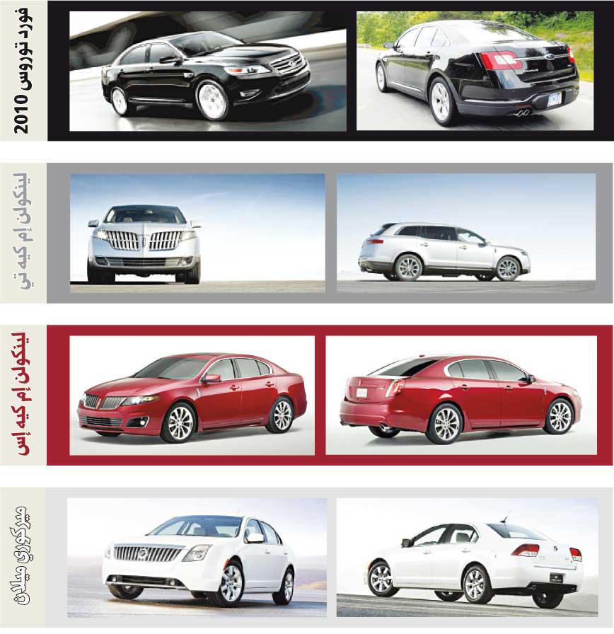 تستعد شركة فورد للسيارات لقصة نجاح جديدة مع إطلاق منتجاتنا الجديدة بالكامل لأول مرة في منطقة الشرق الأوسط. وقد استطاعت هذه الموديلات، مثل فورد توروس 2010، أن ترسي معايير جديدة في القطاع من الابتكارات والتقنيات المتطورة، فضلا عن الجودة الفائقة التي تضمنها للعملاء.تعتبر شركة فورد للسيارات اليوم رائدة القطاع في مجال تقنيات السلامة، ويتجلى ذلك من خلال تفوقها على أي صانع سيارات آخر من حيث عدد التكريمات والتصنيفات العليا التي نالتها. وبالإضافة إلى ذلك، تحصد منتجاتنا المزيد والمزيد من الجوائز والتقديرات على صعيد الجودة والاعتمادية.