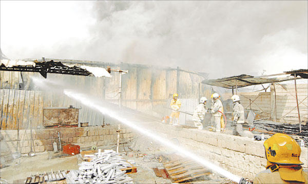 اندلع حريق ضخم في منطقة أمغرة (سكراب الخشب) صباح أمس، في محل تجاري تبلغ مساحته 1500 متر مربع، أتت النيران على جميع محتوياته، واستنفر تسعة مراكز إطفاء، من بينها فرقتا إطفاء الحرس الوطني والجيش الكويتي.