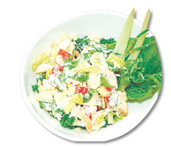 - بصل أخضر بحسب الرغبة.- قليل من الفلفل الحلو. - خسّة.- قليل من الرز المسلوق.- صلصة مايونيز (أربع ملاعق وعصير ليمونة).الطريقة اخلطي المزيج مع صلصة المايونيز وقدّميه بارداً.