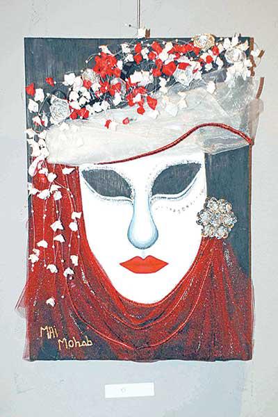 وفي الوقت ذاته، لم تكتفِ الفنانة الشابة بالوجه الغربي، بل مزجت بين أشكال المرأة في الحضارات المختلفة ومنها المرأة العربية المحجبة.وقالت مهاب لـ«الجريدة»: "استوحيت فكرة المعرض عندما كنت في إيطاليا، وشاهدت المهرجانات التي تُقام في مدينة فينيسيا التي يتم فيها ارتداء الأقنعة على اختلاف أشكالها وتنوعاتها الثقافية والحضارية، استخدمت الأقنعة في أعمال ثلاثية الأبعاد بعد دمجها في أطر خارجية، بالإضافة إلى استخدام الأكسسوار بمختلف الخامات، مثل كِسر الألماس والنحاس واللولي والقماش بأنواعه والورود وريش النعام والطاووس".وتخرج وجوه أقنعة المسرح في أعمال مهاب عن حيدتها المعروفة، لتحمل معاني ورموزا مكثفة بين الفرح والسعادة والحزن، بعيداً عن نمطية شكل قناع المسرح المتعارف عليه، وتتجلى في أعمالها تأثيرات فنية لحضارات معينة في هذه اللوحات، كالتأثيرات الصينية والفرعونية والأوروبية التي تأتي نتيجة تأثرها بفكرة مهرجانات إيطاليا التي تستوحي أشكال أقنعتها من مختلف الحضارات الكبرى، القائمة على تنوع الحضارات وتمازجها، مؤكدة في الوقت ذاته بصمتها الخاصة المتمثلة في المزج بين أكثر من أسلوب فني. وعن تفضيلها لفن الكولاج، ترى مهاب أن "فن الكولاج أعتبره أسلوب رسم أكثر ممّا هو فن، فهو يعتمد على الخامات المتناثرة في الطبيعة من أوراق وزجاج وأي خردوات تستخدم لإظهار لوحة فنية غير متوقعة، ويعتمد على إلصاق هذه الخردوات على اللوحة المراد الرسم عليها، سواء كانت ورقا أو خشبا أو زجاجا، ما يعطي مساحات أكبر للإبداع".
