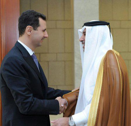 بحث الرئيس السوري بشار الأسد مع رئيس الوزراء القطري وزير الخارجية الشيخ حمد بن جاسم بن جبر آل ثاني العلاقات الثنائية، والمستجدات على الساحة العربية، وذلك خلال لقائهما في دمشق أمس.