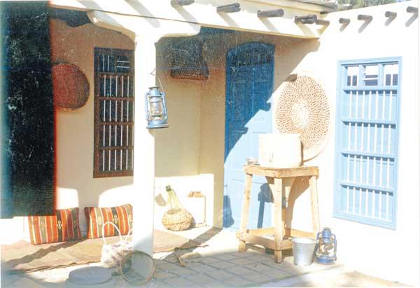 البيوت القديمةوعن أقسام البيت الكويتي القديم أوضح المذن أنه يبدأ "بالدهليز" وصولاً إلى "الحوش" المبلط بـ"الآجر" والمصنوع من الطين المحروق، إذ يمتاز بالبرودة في حال رشه بالماء، وفي الحوش يوجد "الليوان" الذي بدوره يمتاز بأعمدة مرتفعة ذات نقوش فاخرة مصنوعة من خشب الصاج والخشب الباسجيل والجندل كي يستظل به أهل البيت من أشعة الشمس والأمطار، وفي الليوان توضع "البرمه" المستخدمة في حفظ مياه الشرب باردة إلى "مده سفح" المصنوعة من الحصير و"الدوه" وهي عبارة عن منقلة يوضع فوقها الشاي والقهوة، إضافة إلى استخدامها في التدفئة في فصل الشتاء، وكذلك "العريش" المصنوع من السعف، وهو يستخدم للغرض نفسه، وهو الحماية من الأمطار وأشعة الشمس، إضافة إلى "البرجه" المصنوعة من الأسمنت والمسؤولة عن تجميع مياه الأمطار عبر "المرازيب" الموجودة فوق الأسطح، وكذلك "الجليب" المصنوع من حفرة كبيرة مسورة بقطع "الطابوق" وتمتاز مياه الجليب بالملوحة، ويسمى بماء "خريج" إضافة إلى "التنور" المصنوع من الفخار المستخدم في إعداد الخبز وشي الأسماك، وكذلك "دار العرفج" التي كانت تستخدم في الطهي كذلك عن طريق حرق نبات العرفج في داخلها لتنبعث منها النيران، وذلك لاستخدامها في عملية الطهي. كما يتكون المنزل الكويتي القديم بحسب ما جاء به المذن من "دور" وهي الغرف، وتطل هذه الغرف على الحوش، وتحتوي في داخلها على شبابيك و"رواشن" وهي عبارة عن فتحات غير نافذة في الجدار تستخدم في حفظ الحاجيات بداخلها. كما تتكون الغرف من "سرير بلنك"، ويؤكد المذن أنه من النادر استخدامه نظراً لغلاء ثمنه، ومن الجدير ذكره أن غرف المنازل القديمة تمتاز بارتفاع أسقفها وسماكة جدرانها وذلك للتخفيف من حرارة الصيف.الأبواب القديمةوفي ما يخص الأبواب القديمة أشار المذن إلى باب "بو خوخة" وهو يعد الباب الأشهر في الكويت، وكان يوضع على واجهة بيوت الميسورين في ذلك الحين، ويمتاز هذا الباب بأنه باب كبير في جوفه باب صغير للاستخدام اليومي، أما الباب الكبير فيفتح إذا أراد أهل البيت إدخال الحاجيات والمؤن، وينقسم باب "بو خوخة" إلى أنواع منها باب "بوخوخة وحدة" في الوسط وباب "بو خوختين"، ويذكر المذن أن هذا الباب موجود من قديم الزمان، وتغنى به الشعراء في الجاهلية، إضافة إلى أن الرسول صلى الله عليه وسلم ذكره في حديثه قائلاً: "أغلقوا جميع أبواب المسجد إلا خوخة أبي بكر"، ومن أنواع الأبواب كذلك باب "بو تواليت" وسمي بذلك لأنه يشبه تسريحة الشعر المشهورة باسم "قصة تواليت" في ذلك الحين وعادةً ما يصنع هذا الباب من الخشب الصاج أو "الفيني" الأحمر، وما يميز هذا الباب نقشة في النصف تسمى بـ"الخشم"، وكان يستخدم في البيوت والمساجد والدوائر الحكومية، وهناك ما يسمى بالباب "المسماري" ويتكون من "درفتين" ومجموعة من المسامير "المقببه" المصنوعة من النحاس، مشيراً إلى أن "الدقة" الكويتية الخاصة بالباب المسماري مكونة من خمس صفات إضافة إلى مقبض الباب المصنوع من النحاس و"المطقة" التي تستخدم في طرق الباب وتصنع هذه القطعة من الحديد، وتشتهر بشكل كف اليد أو الشكل الدائري، ومن أنواع الأبواب المشهورة في ذلك الوقت "باب بورمانه"، الذي يستخدم داخل البيوت إضافة إلى "الباب المقطع" وهو عبارة عن قطع خشبية مقطعة إلى مربعات أو مستطيلات، ويستخدم هذا النوع في البيوت في الحمامات والمسابح والمطابخ. وهناك أنواع كثيرة مستحدثة وهو "باب مقطع" مضاف إليه "جام"، وسمي هذا الباب بـ"باب بوردة" نظراً للنقوش المحفورة على قطع الزجاج، مما يسمح بدخول النور إلى الحمامات والمسابح.الأخشاب وأنواعهاوعن الأخشاب المستخدمة في صناعة الأبواب يوضح الباحث في التراث الكويتي صالح المذن أنها تجلب من الهند عن طريق البحر بكميات كبيرة، إذ يقوم البحارة بإنزالها إلى الشاطئ مقابل "العماير" وهي سوق تباع فيها الأخشاب ومواد البناء، ومن ثم تشرح قطع الأخشاب في الكويت عن طريق تقطيعها بشكل طولي، وفي موسم البوارح تجف هذه القطع، ومن ثم تبدأ عملية النجارة بعد أن تجف قطع 