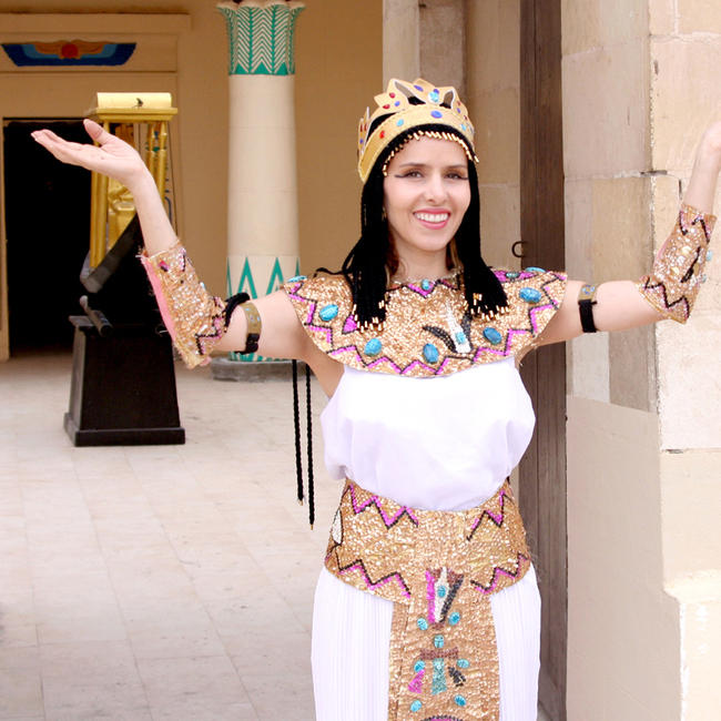 ممثلة برازيلية ترتدي زي "إيزيس" في القرية الفرعونية