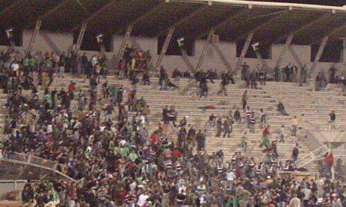 ﻭﺍﺿﺎﻑ ﺧﻮﺭﻱ "ﻫﻨﺎﻙ ﺍﻋﺪﺍﺀ ﻟﻠﻮﺣﺪﺓ ﺍﻟﻮﻃﻨﻴﺔ ﻭﺍﺷﺨﺎﺹ ﻳﻌﺒﺜﻮﻥ ﺑﻬﺎ، ﻟﻜﻨﻨﺎ ﻟﻦ ﻧﺴﻤﺢ ﻟﻬﻢ ﻭﺳﻨﺘﺼﺮﻑ ﺑﺤﻜﻤﺔ ﻓﻨﺤﻦ ﺍﺻﺤﺎﺏ ﺣﻖ"، ﻣﺘﻬﻤﺎ ﻗﻮﺍﺕ ﺍﻟﺪﺭﻙ ﺑﻤﻬﺎﺟﻤﺔ ﻣﺨﻴﻢ ﺍﻟﻮﺣﺪﺍﺕ ﻭﺍﻃﻼﻕ ﺍﻟﻘﻨﺎﺑﻞ ﺍﻟﻤﺴﻴﻠﺔ ﻟﻠﺪﻣﻮﻉ ﻟﺘﻔﺮﻳﻖ ﺍﻟﺤﺸﻮﺩ.ﻭﺍﻧﺪﻟﻌﺖ ﺍﻋﻤﺎﻝ ﺍﻟﺸﻐﺐ ﺑﻌﺪ ﺧﺮﻭﺝ ﺍﻧﺼﺎﺭ ﺍﻟﻔﺮﻳﻖ ﺍﻟﺨﺎﺳﺮ (ﺍﻟﻔﻴﺼﻠﻲ) ﺍﻭﻻ ﻛﻤﺎ ﺗﻘﺘﻀﻲ ﺍﻟﻘﻮﺍﻋﺪ، ﻓﻘﺎﻣﺖ ﻣﺠﻤﻮﻋﺔ ﻣﻨﻬﻢ ﺑﺎﻟﻘﺎﺀ ﺍﻟﺤﺠﺎﺭﺓ ﺍﻟﻰ ﺩﺍﺧﻞ ﺍﻟﻤﻠﻌﺐ ﻣﺎ ﺍﺩﻯ ﺍﻟﻰ ﺗﺪﺍﻓﻊ ﺍﻧﺼﺎﺭ ﺍﻟﻮﺣﺪﺍﺕ ﺍﻟﻤﻮﺟﻮﺩﻳﻦ ﻋﻠﻰ ﺍﻟﻤﺪﺭﺟﺎﺕ ﻓﺘﺤﻄﻢ ﺍﻟﺴﻴﺎﺝ ﺍﻟﺤﺪﻳﺪﻱ ﺍﻟﻔﺎﺻﻞ ﺑﻴﻦ ﺍﻟﻤﺪﺭﺟﺎﺕ ﻭﺍﺭﺽ ﺍﻟﻤﻠﻌﺐ ﻭﺍﺩﻯ ﺫﻟﻚ ﺍﻟﻰ ﺍﺻﺎﺑﺔ ﺍﻛﺜﺮ ﻣﻦ 250 ﻣﺘﻔﺮﺟﺎ.ــــــــــــــــــــــ