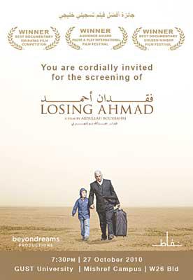 بعد أن عُرِض في 15 مهرجاناً دولياً وحصل على جائزة أفضل فيلم تسجيلي خليجي، يُعرَض اليوم «فقدان أحمد» في جامعة الخليج.