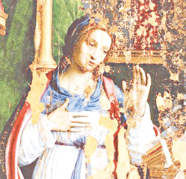 تظهر في هذه اللوحة السيدة العذراء خلال «البشارة». وقد نُفِّذت على قطعة من خشب الحور مساحتها 150سنتمتراً 82X سنتمتراً، وطُليت مرات عدة. وقد كرّس الزوجان وقتهما وثروتهما لها. فهما مقتنعان بأنها صورة Madonna Immaculata المفقودة، التي زيّنت كنيسة سان فرانشيسكو غراندي في ميلانو. وإن صدقت ظنونهما، فسيعيشان حياة رغيدة. لكن اللوحة، بدلاً من ذلك، دمّرتهما.إينغو بوبنيك، مالك صالة عرض سابق، وزوجته متخصّصان في تتبّع اللوحات التي لا يمكن نسبها إلى رسام محدّد. فيرمّمانها ومن ثم يحدّدان هوية راسمها.حالفهما الحظ في مناسبات عدة. ويعود نجاحهما الأكبر إلى عام 2002، حين اكتشفا لوحة مهملة فيها شقان كبيران في إحدى دور المزادات. ذكّرتهما هذه اللوحة بأعمال الرسام الرومانسي كاسبر ديفيد فريدريك. وبما أنهما ما كانا يملكان مالاً كافياً لترميمها، أخبرا أحد أصدقائهما بالأمر. فاشترى اللوحة في المزاد العلني بنحو 80 يورو (114 دولاراً) ورمّمها. واستخلص بعد ذلك أحد الخبراء أنها لوحة أصلية غير معروفة لفريدريك. وفي 15 يونيو 2004، باعت دار Sotheby’s هذه اللوحة، التي حملت الإسم Northern Landscape, Spring في مزاد علني بقيمة 1.55 مليون يورو. فحصل الزوجان بوبنيك على 600 ألف يورو من الأرباح.أمل الزوجان في تحقيق إنجاز مماثل مع لوحة للسيدة العذراء مريم. فلو كانت هذه اللوحة فعلاً من إنتاج ليوناردو دا فينتشي، الرسام الذي ابتدع «الموناليزا»، لشكّل ذلك اكتشافاً مذهلاً. فلا تتجاوز أعمال دافنشي المعترف بها راهناً الإثني عشر. وبدت مفارقة كبيرة في تاريخ الفن أن تظهر لوحة يُفترض أنها من أعمال دا فينتشي الأصلية قبل بضعة أشهر من المعرض الضخم الذي سيُقام لهذا الفنان في المتحف الوطني في لندن في شهر نوفمبر المقبل. ستُقدَّم خلال هذا المعرض لوحة Salvator Mundi، التي يظهر فيها يسوع كمخلِّص للعالم، على اعتبار أنها لوحة أصلية لدا فينتشي.هوسلكنّ الزوجين بوبنيك لم يستطيعا تحقيق إنجاز مماثل مع لوحتهما من بفافنهوفن. بدأت قصة هوسهما هذه في شهر سبتمبر عام 1981، حين اكتشفا لوحة العذراء في إحدى دور المزادات في ميونخ. فحيّرتهما بقعة داكنة بادية على ثوب العذراء مريم وأثارت ريبتهما. تخبر آفلين بوبنيك: «صُعقنا!». ظنّ هذان الزوجان أن البقعة تُظهر أن أحد الهواة رسم فوق اللوحة الأصلية. فاشتريا هذا العمل، الذي نُسب إلى رسام مجهول الهوية وصُنّف في سجلات الدار بالكلمات: «إيطاليا، القرن الخامس عشر»، مقابل 3800 مارك ألماني. وعندما نُظّفت اللوحة، اتضح أن الزوجين بوبنيك لم يكونا مخطئين. فقد شكّلت الظلال على الثوب الأبيض دليلاً على أن أحداً وضع على اللوحة طلاء أكثر حداثة لا يتلاءم مع باقي اللوحة. فعالجها خبير واكتشف أن معظم أجزاء اللوحة مغطى بطبقة أو أكثر من الطلاء الحديث. فبدت العذراء أكثر حيوية من دون تلك الطبقات الإضافية من الطلاء. استغرقت أعمال الترميم، التي كشفت في النهاية عن صورة متضرّرة، سنوات طويلة، وبلغت كلفتها حوالى 28 ألف مارك ألماني.ظهرت في اللوحة العذراء مريم. وخلال ثمانينيات القرن الماضي، ظلّت اللوحة معلّقة على جدار غرفة الطعام في منزل آل بوبنيك لفترة من الزمن. آنذاك، عبّرت آفلين بوبنيك عن شكوكها في أنها قد تكون أحد أعمال دافنشي: «عندما تتأمل اللوحة، تُلاحظ أن مبتكرها رسام استثنائي. فالتعبير المؤثّر البادي على وجه العذراء مميّز».يستطيع الخبراء وحدهم أن يعطوا اللوحة مكانتها الحقيقية في تاريخ الفن. تتوافر أساليب علميّة تحدِّد عمر اللوحة ونمط الرسم وتركيبة الألوان، إلا أنها غير كافية. فللتوصّل إلى خلاصة ذات مصدقية، لا بد من إجراء تحليل لأسلوب الرسم والحصول على رأي خبير في تاريخ الفن مطّلع على أعمال الرسام وطريقته في الرسم، فضلاً عن تقديم وثائق تُظهر مصدر اللوحة المحتمل. وكلما كثرت الأدلة على مصدرها، سهل تحديد مبتكرها. فهذه الأدلة مهمة أهمية سلالة نسب الحصان الأصيل.طلب الزوجان بوبنيك من الخبراء تقييم العمل. فقرر إرنست أولمان، الذي كان يومذاك بروفسوراً في جامعة لايبزغ