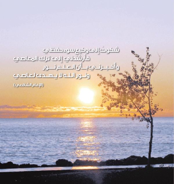 شكوتُ إلى وكيعٍ سوء حفظي فأرشدني إلى ترك المعاصي وأخبرني بأن العلم نــور ونور الله لا يهـدى لعاصي الإمام الشافعي نشر في 11-08-2011 | 22:01 آخر تحديث 11-08-2011 | 22:01