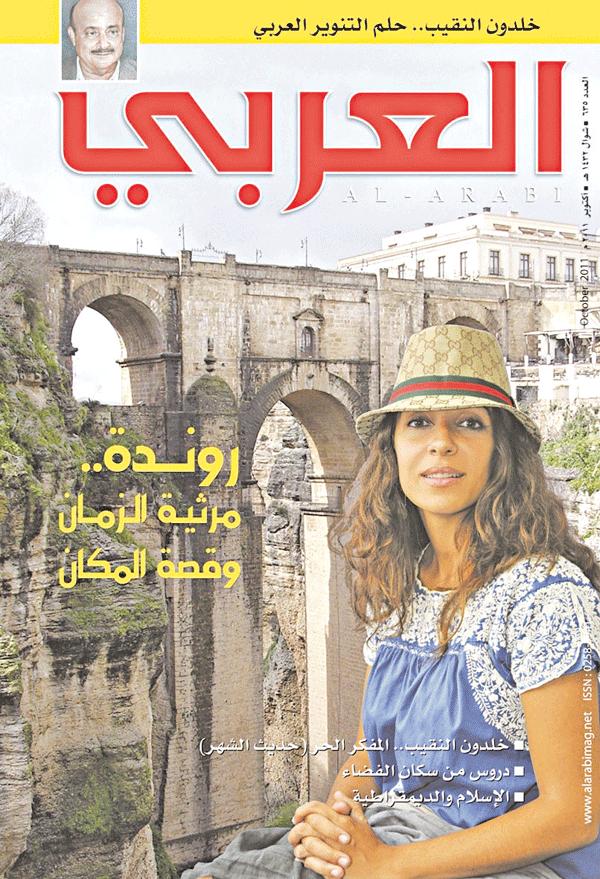 تطير «العربي» إلى مدينة روندة الأندلسية في إسبانيا، وتستقر أعلى جبل يبلغ ارتفاعه 750 متراً، عبر استطلاع مصوّر كتبه ابراهيم المليفي وصوّره حسين لاري بحثاً ورصداً لواقع هذه المدينة وأهلها في تفاعلهم مع موروثهم العربي الأندلسي. يلتقي الكاتب والناقد المغربي عبد الرحيم العلام، في مقابلة خاصة، مع الأمين العام لمؤسسة أصيلة الثقافية في المملكة المغربية الوزير محمد بن عيسى، في حوار موسّع حول المنتدى الثقافي المهم والدور الذي أداه في تشكيل الإمكانات الثقافية كوسيلة حاسمة في التنمية الاجتماعية ودور المنتدى في تفعيل الحوار الثقافي العربي الغربي وفي تفعيل السؤال الثقافي العربي العربي عموماً. يكتب إبراهيم فرغلي في الزاوية الشهرية «ثقافة إلكترونية» موضوعاً بعنوان «ثورة المرأة العربية على الإنترنت»، يتناول فيه الدور الذي أدّته المرأة في الوسيط الافتراضي في هذا الحراك، وبعض ما تعانيه هؤلاء الفتيات في سبيل الدور الذي آمنت به كلّ منهن في رصد الفساد ومتابعة أحداث الانتفاضات العربية، متأملاً تناقض دلالة هذا الدور المهم للمرأة مع القيم الذكورية في غالبية المجتمعات العربية التي لا تزال تتعالى على المرأة ضمنياً أو بشكل فجّ ومباشر.تخصّص «العربي» مجلة داخل المجلة بعنوان «البيت العربي» تتضمّن موضوعات تهمّ أفراد البيت العربي كافة من آباء وأمهات وشباب. يأتي هذا الاهتمام بملحق البيت العربي تمهيداً لصدور الملحق بشكل مستقل بديلاً للملحق العلمي الذي تحوّل إلى مجلة مستقلة، ويصدر الملحق ويوزّع مجاناً مع المجلة بدءاً من عدد ديسمبر المقبل.في الأدب، يكتب شوقي بزيع قراءة نقدية لرواية أحمد الدوسري «ابن زريق البغدادي»، بينما تكتب د. ريتا عوض حول العلاقة بين الشعر وفن التصوير بوصف هذه العلاقة كانت إحدى أهم القضايا الجمالية التي تناولتها الكتابات النقدية الغربية منذ العصر الكلاسيكي، وتستعرض فيه تاريخ تلك القضية وصولاً إلى أحدث الكتابات والدراسات التي تناولت الموضوع. كذلك يتضمّن العدد ترجمة لعدد من قصص الكاتب الإسباني الرائد خوليو كورتاثر، من ترجمة المترجم والشاعر المصري أحمد يماني. وفي الفنون، تكتب سوزان شكرون عن علاقة الزخرفة والحروفية بالفنون التشكيلية، بينما يواصل عبود طلعت عطية في زاويته الشهرية «معرض العربي» تسليط الضوء على أبرز اللوحات الفنية من تراث الفن العالمي، وفي هذا العدد لوحة للفنان هانز هولباين الإبن بعنوان «السفيران الفرنسيان».في باب «قصص على الهواء» الذي ينشر شهرياً وتبثّ القصص الفائزة فيه في إذاعة «بي بي سي» العربية، تحكِّم القصص الفائزة لهذا العدد الناقدة والكاتبة المغربية رشيدة بن ميسون وتنشر المجلة القصة الأولى للقاص اليمني عمار حمود القاضي.