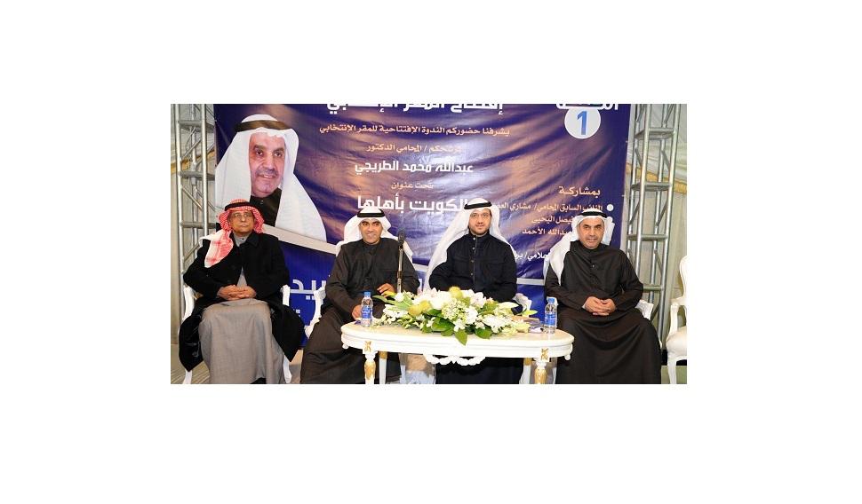 شدد عدد من مرشحي انتخابات مجلس الأمة في ندوة "الكويت بأهلها" التي أقامها مرشح الدائرة الأولى عبدلله الطريجي مساء أمس الأول بمناسبة افتتاح مقره الانتخابي في منطقة بيان "على ضرورة تطبيق المادة 50 من الدستور التي تنص على فصل السلطات مع تعاونها".