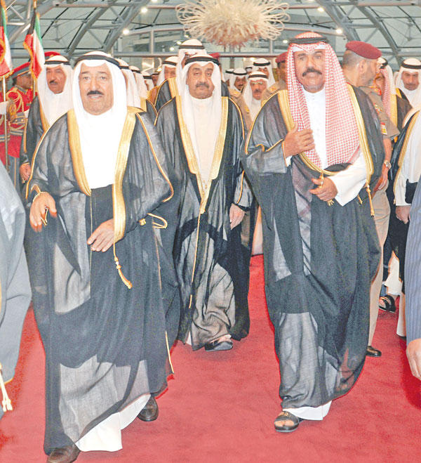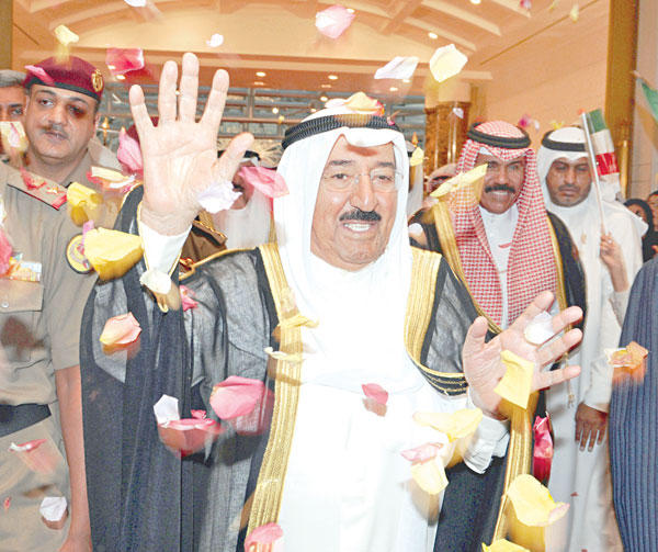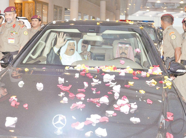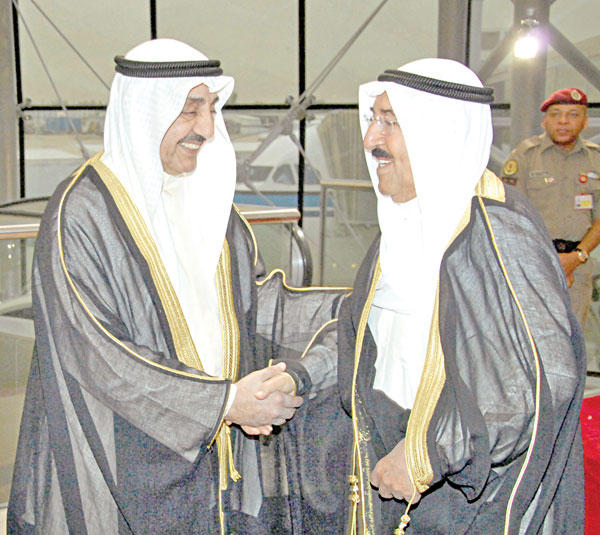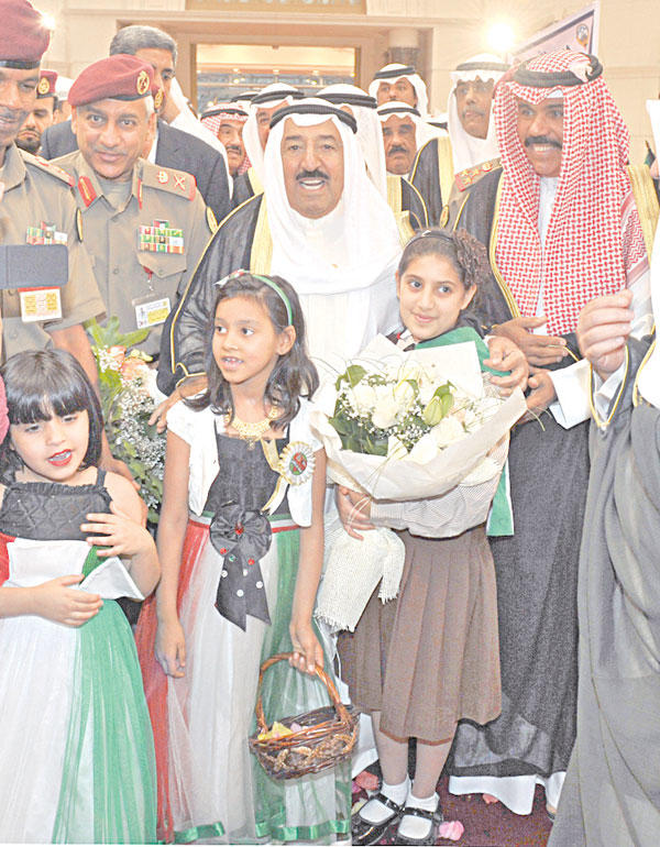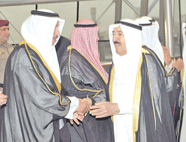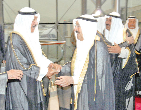 وكان في استقبال سموه على أرض المطار سمو ولي العهد الشيخ نواف الأحمد، ورئيس مجلس الأمة جاسم الخرافي، وكبار الشيوخ، ورئيس مجلس الوزراء سمو الشيخ ناصر المحمد، والنائب الأول لرئيس الوزراء وزير الدفاع الشيخ جابر المبارك، ووزير شؤون الديوان الأميري الشيخ ناصر صباح الأحمد، وكبار المسؤولين بالدولة وكبار القادة في الجيش والشرطة والحرس الوطني وكبار رجالات الدولة وجمع غفير من المواطنين الكرام ومن أبنائه وبناته من مختلف المدارس.