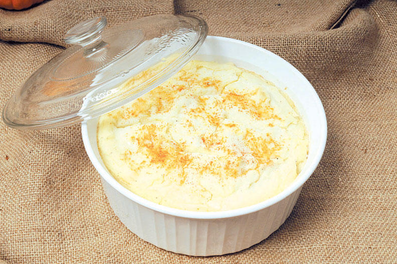 - 12 حبة بطاطا متوسّطة الحجم.- 22 غراماً من الجبنة بالكريما.- كوب من القشدة الحامضة.- ملعقة ملح صغيرة.- ملعقة فلفل صغيرة.- فصّ ثوم مسحوق.- ربع كوب من الكرات المقطّع (إذا رغبت في ذلك).- نصف ملعقة صغيرة من البابريكا.- ملعقة كبيرة من الزبدة. الطريقة-1 قشّري البطاطا وقطّعيها الى أرباع واسلقيها على النار حتى تصبح طريّة.-2 ضعي في الخلاط الكهربائي البطاطا والقشدة الحامضة والجبنة والملح والفلفل والثوم والكرات وامزجيها حتى يصبح الخليط ناعماً. -3 أسكبي المزيج في صينيّة الخبز.-4 أنثري عليه البابريكا والزبدة.-5 أتركيه في الفرن لمدة 30 دقيقة على 150 درجة مئوية. ملاحظة: يمكنك أن تعدّي البطاطا وتسحقيها وتضعيها في البراد وتستخدميها في النهار التالي. في هذه الحالة يجب أن تخبزيها على 150 درجة مئوية مدة 45 الى 60 دقيقة.