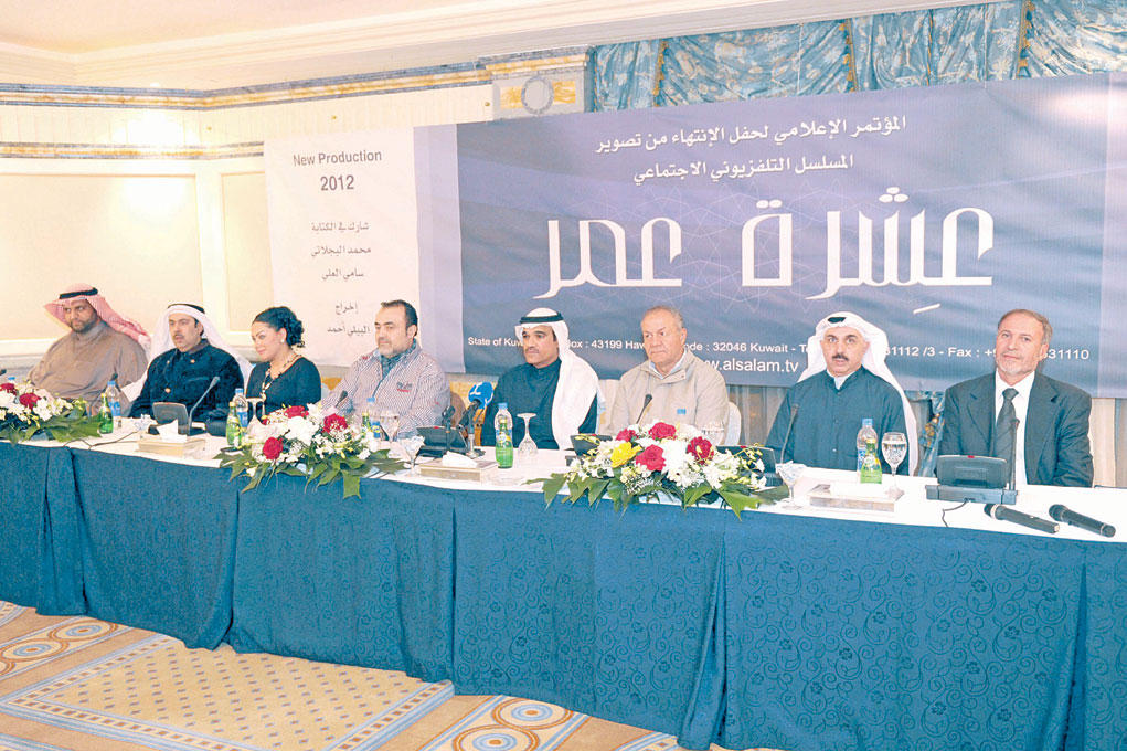 عقد مساء أمس الأول في فندق الشيراتون مؤتمر صحافي بمناسبة انتهاء تصوير المسلسل الاجتماعي "عشرة عمر" الذي تنتجه مجموعة السلام الإعلامية وهو من إخراج البيلي أحمد ومن تأليف الفنان عبدالعزيز المسلم.يتحدث المسلسل عن المرأة وأحوالها في المجتمع الخليجي وكيفية تعاملها مع أعباء الحياة خاصة بالنسبة إلى المرأة المطلقة، أو التي تفقد زوجها، أدار المؤتمر الصحافي الزميل ياسر العيلة بحضور بعض نجوم المسلسل أبرزهم الفنان مشاري البلام، غدير صفر، محمد المسلم والفنانة رانيا السباعي.كلمة المؤلفالكاتب عبدالعزيز المسلم أوضح في بداية حديثه أن قصة المسلسل مقتبسة من رواية "أخت الرجال" ويشارك فيه نخبة كبيرة من الفنانين يجتمعون لأول مرة تحت سقف واحد، وأضاف: "لم اشارك في بطولة هذا المسلسل لأنه ليس من الضرورة في كل إنتاج تلفزيوني لمؤسسة السلام و جودي كممثل إذا لم يصاحب ذلك ترشيح من المخرج لدور معين".واستطرد المسلم موضحا أن الشركة المنتجة لم تتفق بعد مع أي قناة لعرض المسلسل، ولكن هناك احتمالات عديدة فمازال التخاطب مستمرا مع كل من تلفزيون أبوظبي وتلفزيون دبي وقناة إم بي سي وتلفزيون دولة الكويت والمملكة العربية السعودية، واختتم عبدالعزيز المسلم حديثه بتمنيه أن يلقى المسلسل إعجاب الجماهير ورضا الجميع. من ناحيته أوضح مخرج العمل البيلي أحمد أن قضية المسلسل هي واقع نعيشه الآن، مؤكدا أن دور الرجل في هذا العمل هو مكمل لدور المرأة، لذا لا نجده في موقع البطولة.تحدث في المؤتمر كذلك نجوم العمل، وهم: مشاري البلام، وغدير صفر، والفنان الشاب محمد لمسلم، وتتراوح أدوارهم بين الرومانسية، والصراع القائم على الندية والتحدي.دويتو غنائيتشارك الفنانة المغربية أمينة في ديو غنائي مع الفنان القدير محمد البلوشي في أداء أغنية المقدمة لمسلسل "عشرة عمر"، ويذكر أن هذا هو الديو الأول للفنان محمد البلوشي خلال الأعوام الأخيرة، وكان الفنان محمد البلوشي سعيداً بعد مشاركته لأول خلال مؤتمر صحافي وأوضح أن هذه هي المشاركة الأولى له مع الفنانة المغربية أمينة متمنياً التوفيق لطاقم المسلسل.أبطال المسلسليذكر أن المسلسل من بطولة مجموعة كبيرة من الفنانين أبرزهم هدى الخطيب، صلاح الملا، إلهام الفضالة، مشاري البلام، عبدالإمام عبدالله، عبير أحمد، شهاب جوهر، ناصر كرماني، غدير صفر، سوسن الهارون، مسك، عبدالله البدر، محمد المسلم، ناصر الدوب، رونق، غزلان، سارة، محمد حسين المسلم، ناصر الجزاف ودلال سلطان إضافة لنخبة كبيرة من نجوم وفناني الخليج.