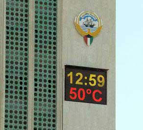 توقع مدير ادارة الارصاد الجوية بالإدارة العامة للطيران المدني محمد كرم استمرار الطقس الحار اليوم، وتجاوز درجات الحرارة 50 درجة مئوية في كثير من مناطق البلاد.وقال كرم: "إن الرياح ستكون شمالية غربية معتدلة السرعة تتجاوز أحيانا 55 كم في الساعة، ويكون الطقس مغبرا في كثير من الأوقات، مما يؤدي إلى انخفاض درجات الحرارة عن 50 درجة مئوية وانتهاء موجة الحر الشديد بعد يومين".