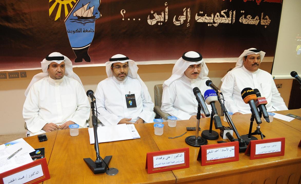 نظمت جمعية أعضاء هيئة التدريس بجامعة الكويت بندوة بعنوان "جامعة الكويت إلى أين ..؟" حضر فيها كل من النائب مسلم البراك والنائب د.حسن جوهر والنائب خالد الطاحوس