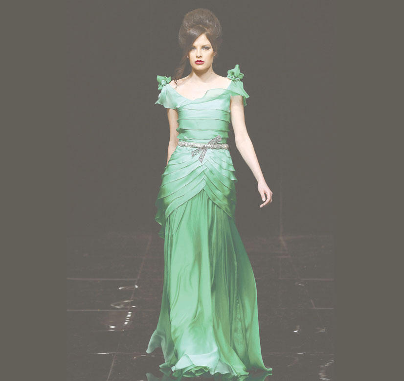 ينساب تألق الألوان في تصاميم تؤكد أن الأناقة لا تقتصر على حاسة النظر، بل يمكن لمسها وشمها والاستمتاع بها في مجموعة للمصممين حنا وشيرين توما بعنوان Scented colors لأزياء الهوت كوتور لربيع - صيف 2012.