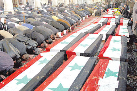دمشق تشيع ضحايا التفجيرين... وحمص تحت القصف