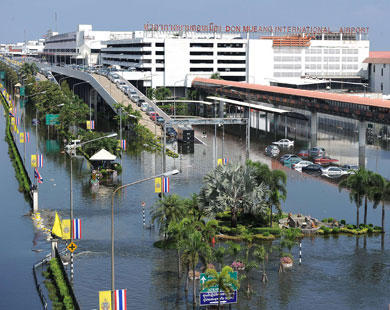 ذكرت تقارير إعلامية اليوم السبت أن السلطات التايلاندية أقامت حاجزا من أكياس الرمال الضخمة في شمال العاصمة بانكوك، لإنقاذ قلب العاصمة من الفيضانات.