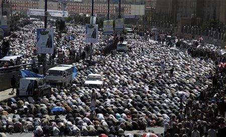 خرج أنصار الرئيس اليمني علي عبد الله صالح الى شوارع العاصمة صنعاء يوم الجمعة للمرة الاولى منذ توقيعه على اتفاق سلام الشهر الماضي مع اندلاع اعمال عنف في جبهات اخرى في اليمن.