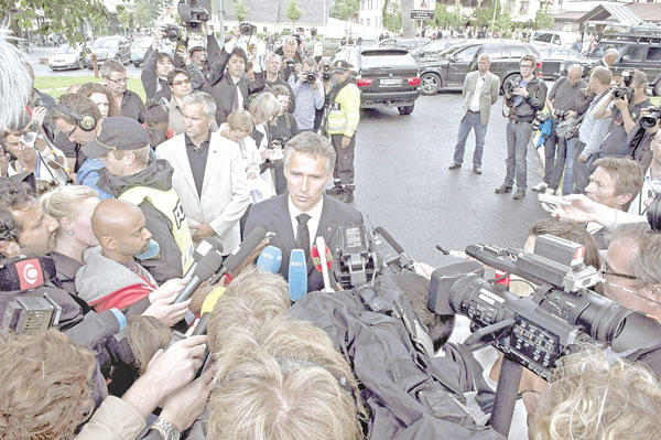 واستجوبت الشرطة النرويجية أمس اندريس بيرنغ بريفيك الذي يشتبه في أنه نفذ الاعتداءين. وبحسب التحقيقات الأولية، فإن المشتبه فيه نفذ الاعتداء بالقنبلة في الحي الحكومي وسط أوسلو، ثم توجه إلى جزيرة أوتاي حيث فتح النار على المشاركين في مخيم صيفي لـ"الشبيبة العمالية" التابعة للحزب الحاكم في البلاد.وقال المسؤول في الشرطة روجر أندرسن إن المشتبه فيه نرويجي الجنسية والأصل، ويبلغ من العمر 32 عاماً، وهو "أصولي مسيحي تميل آراؤه السياسية إلى اليمين".وأعلن "الحزب التقدمي" أن المشتبه فيه هو عضو في هذا التشكيل اليميني الشعبوي وحركته الشبابية.وقالت متحدثة باسم الشرطة إنه "تأكد مقتل 85 شخصاً من جراء إطلاق النيران في جزيرة أوتاي"، في حين قتل سبعة في انفجار القنبلة وسط العاصمة.وأعلنت شركة للمستلزمات الزراعية أمس أن بيرنغ بريفيك اشترى ستة أطنان من الأسمدة في مايو الماضي، علماً أن بعض أنواع الأسمدة الزراعية يستخدم في صنع المتفجرات.وتفقد ملك النرويج هارالد الخامس وزوجته الملكة سونيا وولي العهد الأمير هاكون أمس الناجين من إطلاق النار في أوتاي في الفندق الذي يقيمون فيه في الجزيرة. وزار الفندق أيضاً رئيس الوزراء النرويجي يانس ستولتنبرغ، واعتقلت الشرطة خلال وجوده في الفندق شاباً يحمل سكيناً في جيبه، زعم لاحقاً أنه يحمله لأنه لا يشعر بأنه في أمان.ووصف ستولتنبرغ ما جرى بأنه "مأساة وطنية"، وأكد أن مسؤولين نرويجيين يعملون مع وكالات استخبارات أجنبية لمعرفة هل هناك أي تورط دولي في الحادث.وفجر أمس أعلنت شرطة أوسلو أن قوات الجيش والشرطة ستشدد التدابير الأمنية حول المباني والمؤسسات الحساسة التي يحتمل أن تتعرض لتهديدات.ووسط الذعر المطبق، روى بعض الناجين من إطلاق النار في مخيم "الشبيبة العمالية" أن منفذ الاعتداء كان يرتدي زي الشرطة، ودعا المشاركين إلى التجمع حوله لإبلاغهم "نبأً هاماً"، ثم فتح النار مدة تزيد على 45 دقيقة قبل أن تصل فرقة التدخل السريع.وروى بعضهم أنه تظاهر بالموت لينجو من إطلاق النار، في حين نجا آخرون مصادفة، وهرب بعضهم عبر الغابات القريبة.ومن بين الناجين من المجزرة مسؤول قطاع الجامعات في منظمة "الشباب التقدمي" التابعة للحزب "التقدمي الاشتراكي" اللبناني باسل العود الذي روى قائلاً: "عند لحظة الهجوم على المخيم من قبل أحد الأشخاص كنت موجوداً في إحدى الغرف، وعندما سمعت إطلاق النار نظرت من النافذة فرأيت شخصاً يرتدي بزة شرطة ويقوم بإطلاق النار من رشاشين على المشاركين في المخيم، فأسرعت بالخروج من غرفتي وهربت مع آخرين عبر الغابات المحيطة إلى نهر قريب، فرمينا بأنفسنا فيه إلى أن وصلنا سباحة إلى أحد القوارب السياحية وتمكنا من النجاة".(أوسلو - أ ف ب، أ ب، رويترز،د ب أ، يو بي آي)