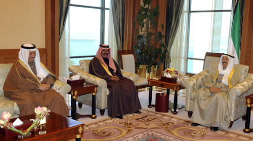استقبل حضرة صاحب السمو أمير البلاد الشيخ صباح الأحمد الجابر الصباح حفظه الله ورعاه بقصر السيف ظهر اليوم وبحضور سمو ولي العهد الشيخ نواف الاحمد الجابر الصباح معالي الشيخ جابر المبارك الحمد الصباح رئيس مجلس الوزراء لاداء اليمين الدستورية أمام سموه حفظه الله وذلك بمناسبة تعيينه رئيسا لمجلس الوزراء.