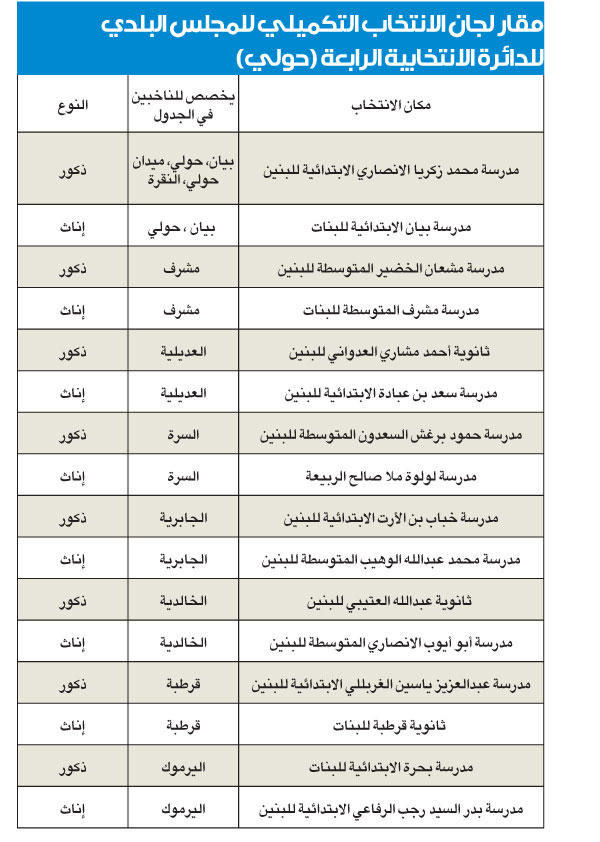 أعلنت وزارة "الداخلية" أماكن اقتراع "تكميلية" البلدي المقرر اجراؤها غدا مناشدة الناخبين التوجه إلى اللجنة المقيد بها اسم الناخب وتقديم شهادة جنسيته للاطلاع عليها وختمها ومن ثم إعادتها، لافتة الى انها ستقوم بتعليق كشوف بأسماء الناخبين للتيسير عليهم ولسرعة انجاز عمل اللجان. كما ناشدت الوزارة في بيان الناخبين التوجه إلى اللجان المقيدين بها وتقديم شهادة الجنسية، للاطلاع عليها وختمها بختم خاص ومن ثم إعادتها، مشيرة الى انه سيتم تعليق كشوف بأسماء الناخبين أمام كل لجنة. وأوضح البيان ان الاختيار لن يتجاوز مرشحا واحدا، "وعلى الناخب الذي لا يستطيع إثبات رأيه بنفسه أن ينتحي ويسر برأيه الى رئيس اللجنة".