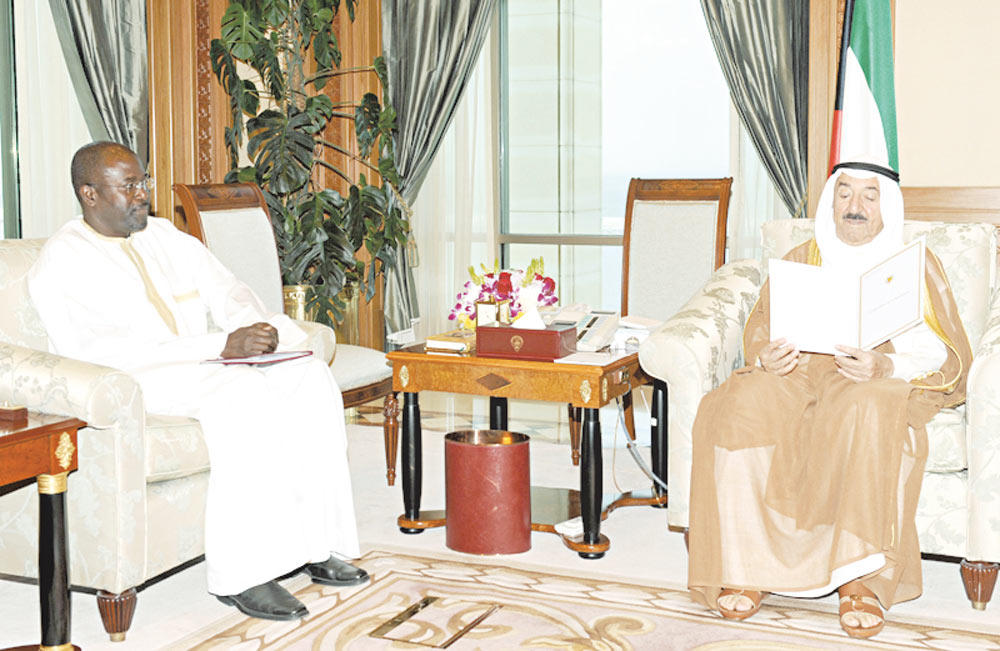 استقبل سمو امير البلاد الشيخ صباح الاحمد بقصر السيف أمس سفير جمهورية السنغال لدى الكويت عبدالاحد امباكي الذي سلم سموه رسالة خطية من الرئيس عبدالله واد رئيس تتعلق بالعلاقات الطيبة التي تربط البلدين والشعبين الصديقين وسبل تعزيزها في المجالات كافة والقضايا ذات الاهتمام المشترك.كما استقبل سموه بقصر السيف صباح امس سفير جمهورية رومانيا لدى الكويت كونستانتين نيسور بمناسبة انتهاء فترة عمله سفيرا لبلاده.