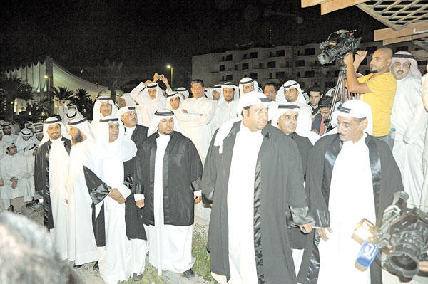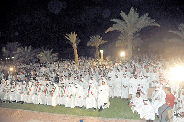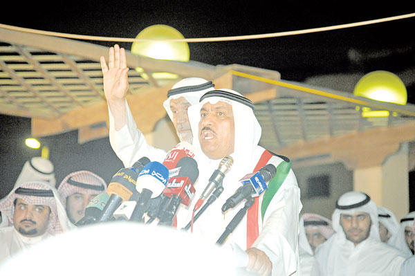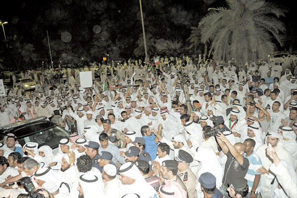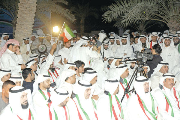 وأكد النواب وممثلو الحركات والتجمعات الشبابية، أمام المتجمهرين الذين وصل عددهم إلى نحو 2000، المضي في مطالباتهم برحيل المحمد وحكومته عن السلطة.منظومة الحكموقال النائب مبارك الوعلان "إن هناك فسادا وخللا موجودا حتى في منظومة الحكم بين ابناء الاسرة، ورأينا ذلك في الجلسة الاخيرة"، مضيفاً "إن هناك خللا كبيرا وفسادا في حكومة ناصر المحمد"، مؤكدا وجوب أن يكون هناك تجانس وألفة بين الاسرة الحاكمة لأهميتهم وعدم الحاجة إلى غيرهم.وذكر: "اليوم كل اهل الكويت يعرفون من هو المتمصلح، ومن يعمل للمصلحة الخاصة، ونحن تعرضنا لهجمة شرسة، ولكن نقف موقفا صلبا في وجه هذا التمصلح ونحن قلة ولا يستطيع احد ان يراوضنا".وتابع: "نحن من اجل مصلحة الكويت والشعب اعطينا موقفا في استجواب الفهد، والفساد مثل البحر والنواب سيدافعون عن الحكومة، كما أن وزير البلدية وشركات مدانون في قضية الاغذية الفاسدة، واهل الكويت أكلوا اغذية فاسدة بسبب هذا التلاعب والفساد المستشري في البلد".وأكد الوعلان أحقية الشعب في الوقوف والتعبير عن رأيه، متسائلا "عن موقف الـ22 نائبا بتصويتهم بعدم التعاون مع رئيس الوزراء في وجوب رحيله، وترك المجال لغيره"، مشيرا إلى أن "البعض لا يريد هذه التجمعات والتعبير عن الرأي، ولا يريد تفاعل شعب الكويت وتوصيل رسالته".وبين أنه "كان هناك من لا يتعدى 20 شخصا في مظاهرة تأييد لرئيس الوزراء ونحن نحترم رأيهم"، مضيفاً "إن هذه الحكومة غير مؤمنة بالدستور ولا تريد العمل به".تفشي الفسادمن جانبه، قال النائب الأسبق لمجلس الأمة فهد الخنة "عندما يصبح الفساد حادثة فمن الممكن أن تسأل وزيراً واحداً، لكن عندما يصبح الفساد بهذا الحجم الكبير فإننا لا نستطيع استيعابه فقد بات متفشيا في جميع الوزارات"، مؤكدا أن هناك فسادا لدى بعض النواب، كالفساد الموجود في الحكومة.وأضاف الخنة أنه "لا ينبغي الركض وراء الوزراء، لأن رئيس الوزراء هو المسؤول، قائلاً: "رئيس الوزراء يقول إن الاستجوابات لا تعطل عملنا"، متسائلاً: "كيف ونحن لم نرَ شيئاً على الأرض؟".تخويفوقال النائب د. وليد الطبطبائي إنه "رغم التخويف والإرهاب حضر الناس في الجمعة الماضية واليوم، وهذه رسالة لمن قال إن عددهم ألفان"، مضيفا: "ارحل يا سمو الرئيس، فالكويت تحتاج الأفضل، فعبر سبع حكومات لم نرَ شيئا"، مستشهداً بأن "هناك دولة أنشأت مدينة جامعية في سنتين، بينما تنشئ حكومتنا مستشفى في غضون 6 سنوات".وبيَّن أن الحكومة تعاني سوء إدارة وترضيات ومحسوبية إضافة إلى "الوسطات" وتعيين الوكلاء، داعياً إلى احترام الدستور، لأن الحكومة رضت لتدخلات النواب في الدستور من أجل مصلحتها وبقائها.وأكد الطبطبائي أن الشيخ ناصر المحمد استقطب كتلة العمل الوطني من أجل إسقاط الشيخ أحمد الفهد، لافتا إلى من حق النائب أن يضع الوزير على منصة الاستجواب، ويطرح ما لديه لكي يستمع له, مستهجنا مساهمة بعض النواب في تعطيل الدستور، وأن "هناك أمرا مدبرا ومرتبا في استجواب الفهد، وذلك بين رئيس الوزراء وكتلة العمل الوطني وتمت التضحية بالشيخ أحمد الفهد".وأشار إلى أن من حق الجميع التعبير عن رأيهم، وهذه حرية كفلها الدستور، مشددا على أن المظاهرات أمر طبيعي في كل البلاد المتحضرة، فمثلا في بريطانيا كل يوم مظاهرات عمالية وغيرها.«اللفو والطراثيث»وقالت الحركة السلفية، على لسان ممثلها فهيد الهيلم، إن أهل الكويت الأحرار رفعوا شعار "ارحل فنحن نستحق الأفضل"، مشيراً إلى أنه في عهد الشيخ ناصر المحمد ضرب الإعلام مكونات الشعب الكويتي، ووصفهم بـ"اللفو والطراثيث" وتم قتل المواطنين في المخافر دون محاكمات، وقدمت الشيكات إلى بعض نواب الأمة.وأكد الهيلم أن إرادة البرلمان مختطفة، بالإرسال للعلاج في الخارج بثمن بخس، قائلاً لرئيس الوزراء "إذا كنت تستهزئ بألفَي شخص فغداً سيصلون إلى عشرة آلاف".هيبة الدولة من جانبها، قالت الحركة الدستورية "حدس" على لسان ممثلها محمد الدلال إن "الأمور كلها أسندت إلى غير أهلها، فتراجعت هيبة الدولة، ولم يعد لل