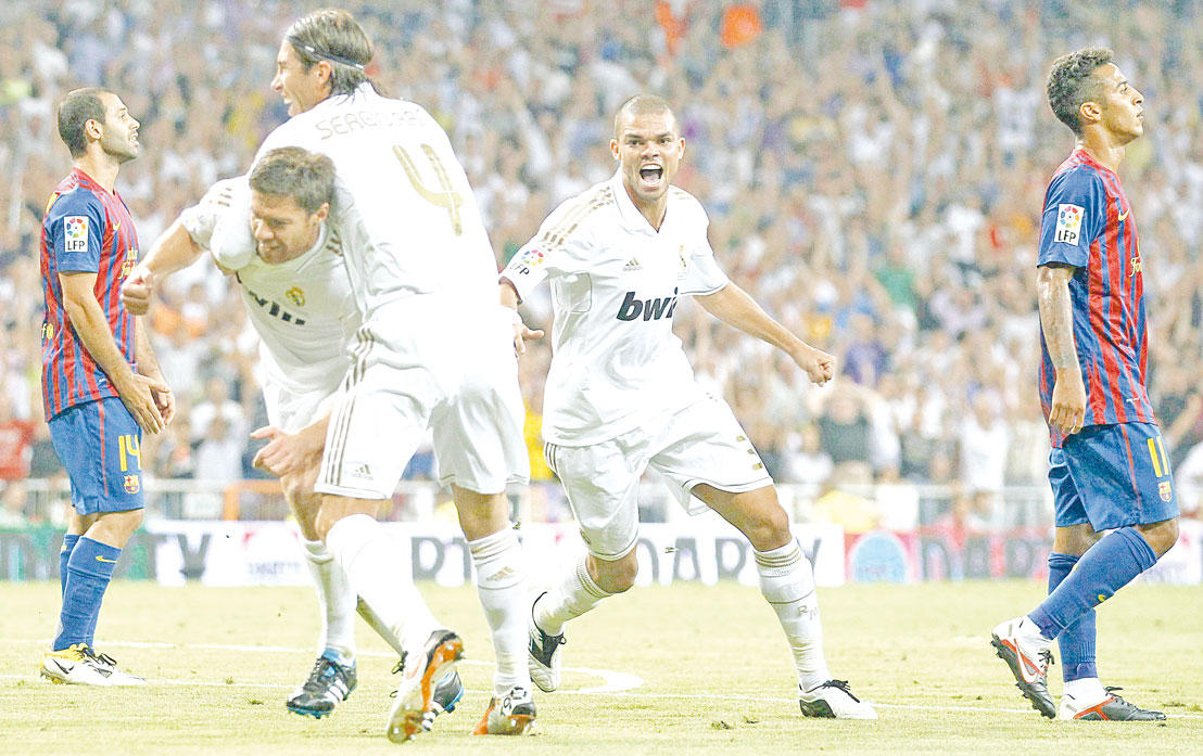 فرض نادي برشلونة التعادل الإيجابي 2-2 على مضيفه ريال مدريد أمس الأول، في المباراة التي جمعت بينهما باستاد "سانتياغو برنابيو" في ذهاب كأس السوبر الإسبانية.وجاءت المباراة مثيرة من جانب الفريقين ولكن الأفضلية كانت من جانب ريال مدريد الذي تلقى دعما جماهيريا كبيرا على ملعبه.وبدأت المباراة بمحاولة جس النبض بين الفريقين، ولكن سرعان ما كشر ريال مدريد عن أنيابه وشن عدة هجمات خاطفة، أملا في تسجيل هدف مبكر يربك به حسابات النادي الكتالوني.وسيطر ريال مدريد على الدقائق العشر الاولى من زمن الشوط الأول ووصل البرتغالي كريستيانو رونالدو والفرنسي كريم بنزيمة عدة مرات لمرمى فيكتور فالديز، ولكن دون أن ينجحا في هز الشباك.وأهدر بنزيمة فرصة هدف محقق بعدما تلقى تمريرة سحرية من الجهة اليسرى عن طريق رونالدو، ولكن فالديز أبعد تسديدته الرأسية بمهارة يحسد عليهاوأعلنت الدقيقة 13 هدف السبق لريال مدريد بتوقيع الألماني الصاعد مسعود أوزيل بعدما تلقى تمريرة رائعة داخل منطقة الجزاء من بنزيمة، الذي راوغ اثنين من المدافعين، ليسدد كرة خاطفة بقدمه اليسرى عرفت طريقها إلى الشباك.واتسمت وتيرة الأحداث بالسرعة مع مرور الوقت، وبدأ الفريقان في الاعتماد على الهجمات السريعة الخاطفة عبر استغلال الكرات الطولية.وحصل الألماني سامي خضيرة نجم وسط ريال مدريد على بطاقة صفراء لاستخدام الخشونة، وجاءت الدقيقة 36 لتشهد هدف التعادل لبرشلونة عن طريق المهاجم الإسباني الدولي ديفيد فيا الذي تلقى تمريرة رائعة من الارجنتيني ليونيل ميسي ليقوم بخداع سيرخيو راموس ويسدد كرة قوية خادعة عرفت طريقها لأقصى الزاوية اليسرى لمرمى إيكر كاسياس.ميسي يحرز التقدم وفي الوقت بدل الضائع من الشوط الأول استغل ميسي غفوة دفاعات ريال مدريد وتوغل بالكرة داخل منطقة الجزاء، بعد أن ارتدت له الكرة من قدم خضيرة ليسدد كرة زاحفة مرت من بين قدمي كاسياس إلى داخل الشباك، لينهي برشلونة الشوط الأول متقدما 2-1. وجاءت بداية الشوط الثاني سريعة جدا خصوصا من جانب ريال مدريد، الذي حاول تسجيل هدف التعادل سريعا لإشعال حماس الجماهير المحتشدة في سانتياغو برنابيو. وسيطر النادي الملكي على مجريات اللعب تماما في الدقائق الخمس الأولى من عمر الشوط الثاني ولكن دون أن ينجح في هز الشباك.وأجرى البرتغالي جوزيه مورينيو المدير الفني لريال مدريد تغييرا بخروج الأرجنتيني انخيل دي ماريا ونزول الوافد الجديد فابيو كوينتراو.وأدرك ريال مدريد التعادل في الدقيقة 54 إثر ضربة ركنية وصلت داخل منطقة الجزاء إلى بنزيمة، الذي أرجع الكرة إلى الخلف باتجاه تشابي الونسو الذي سدد مباشرة كرة قوية مرت من بين أقدام المدافعين وسكنت الزاوية اليسرى للحارس فالديز.وكاد بنزيمة يخطف الهدف الثالث لريال مدريد ولكن فيكتور فالديز كان له بالمرصاد، قبل أن يسدد بنزيمة ضربة رأسية أخرى مرت من أمام خط المرمى دون وجود متابع.وواصل ريال مدريد صولاته وجولاته وتلاعب بدفاعات برشلونة تماما، وكان بمقدور الفريق تسجيل العديد من الأهداف، ولكن التسرع في إنهاء الهجمات وتألق فالديز حالا دون تحقيق ذلك.وشن النادي الملكي هجمة جديدة لتصل الكرة إلى رونالدو داخل منطقة الجزاء، ولكن الكرة ذهبت في أحضان فالديز ثم سدد بنزيمة كرة أخرى ضلت طريقها للمرمى.وكثف ريال مدريد من محاولاته الهجومية، بينما اعتمد برشلونة على مهارة وسرعة لاعبيه لكن مع وجود أفضلية لصالح النادي الملكي.ولم تشهد لحظات الوقت بدل الضائع أي جديد لتنتهي المباراة بتعادل الفريقان 2-2، قبل أن تتجدد المواجهة بينهما يوم الغد في مباراة الإياب.(د ب أ)ألفيس: ميسي ظاهرة وسنكون أفضلأكد الظهير الأيمن لفريق برشلونة الإسباني داني ألفيس عقب التعادل 2-2 أمام ريال مدريد في ذهاب كأس السوبر المحلية بملعب سانتياغو برنابيو، ان فريقه أدى اللقاء بمستوى بدني جيد، متعهدا بتقديم أداء أفضل خلال لقاء العودة الأربعاء المقبل في كامب نو.وقال ألفيش في تصريحات صحافية «المباراة كانت شديدة التنا
