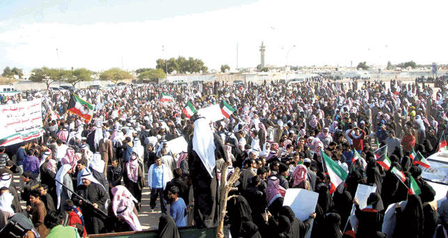 للأسبوع الثالث على التوالي نظم البدون تجمعا سلميا ظهر أمس وتحديدا بعد صلاة الجمعة في منطقة تيماء تحت مسمى "دمنا من أجل الكويت" مطالبين الحكومة بتجنيسهم وحل مشكلة غير محددي الجنسية بشكل جذري ونهائي، وشارك في التجمع عدد من الفعاليات السياسية والنشاط السياسي. وكانت الأجهزة الأمنية برئاسة القائد الميداني وكيل وزارة الداخلية المساعد لشؤون الأمن العام اللواء محمود الدوسري، سمحت للمتجمهرين من البدون بالتعبير عن آرائهم وتنظيم التجمع لمدة ساعتين من بعد صلاة الجمعة ولم يتم فض الاعتصام.