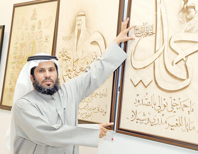 الفرهود استهوته فنون الخط العربي منذ الصغر، متأملاً هندسة التشكيل ونتوءات الحروف، عبر أعمال تشكيلية وتلفزيونية وسينمائية، معتبراً أن مشهداً في فيلم «غزل البنات» شكل نقطة تحول في مسار حياته، لينكب على دراسة الخط، مكتسباً خبرات متنوعة من خلال انخراطه ضمن دورات تدريبية أشرف عليها كبار الفنانين في الخط العربي. يرى الفرهود أن الحرف ليس ملكاً خاصاً لفرد، بل هو ملك الذوق العام؛ لذلك يجب الفصل بين الفن وما يحدث من تشويه. وفي ما يتعلق باستثمار التقنيات الحديثة ضمن الخط العربي، يقول إن هذه التقنيات تكشف الفنان الحقيقي من المدعي. حول عودته متأبطاً مشروعه الجديد «وطن الشعراء» وأمور أخرى تتعلق بمكونات فن الخط العربي كان الحوار التالي مع الفرهود.تعود إلى الساحة التشكيلية عقب غياب نحو 10 أعوام، لماذا انتظرت كل هذه الفترة؟قدمت آخر معارضي الفنية في عام 2001 في فنلندا عارضاً مجموعة أعمال حظيت بتقدير واحترام المتلقي في تلك الدولة الأوروبية، لكن عقب هذه التجربة الناجحة حدثت بعض الأمور التي فرضت عليّ الغياب في مقدمتها وفاة ابني بعد رحلة شاقة مع المرض الذي اضطررت بسببه إلى الانزواء لمتابعته، كما أني أحرص على تقديم عمل فني متكامل شكلاً ومضموناً، فبطبعي لا أحبّذ تقديم المعارض الفنية لمجرد إثبات وجودي، لذلك آثرت البحث عن فكرة جديدة تعيدني إلى الساحة الفنية بشكل متزن، لاسيما أن عملي في الخط العربي يندرج ضمن فلسفة خاصة تنبع من أن للفن دورا مؤثرا في نشر ثقافة الذوق الفني وتقديم خطاب يمزج بين جمال الشكل والمضمون، إلى أن جاءت فكرة تنظيم معرض يحتفي بالشعراء الكويتيين بمساعدة مجموعة من الأصدقاء، تكريماً لدورهم الفاعل إبداعياً واجتماعياً.ممّ استلهمت فكرة مشروعك؟أردت تسليط الضوء على مبدعين من بلدي تكريماً لهم ولعطائهم، لذلك ركزت على الشعراء ضمن هذا المعرض، وحظيت الفكرة باستحسان المتلقي، كما أن حفاوة استقبال الجمهور أثلجت صدري، ولا يفوتني أن أشكر المسؤولين في المجلس الوطني لدعمهم المستمر للمبدعين، وبصراحة أنا أنتقد الذين ينتقدون المؤسسات الحكومية ويعلقون تقاعسهم وإخفاقهم على التقصير الحكومي.داعم رئيسيهل لديك علاقات مع بعض الشعراء الذي انتقيت أعمالهم؟بصراحة، ليس لديّ علاقات مباشرة بل علاقة قارئ بمبدع، وقد حرصت على إهداء بعض أقارب الشعراء الذين حضروا بعض لوحاتي تكريما لهذه الشخصيات الفذة، وما أقدمه في المعرض يعد نقطة في إبداع هؤلاء الكبار، كما أنني سعدت بزيارتهم للمعرض، فضلا عن أنني تشرفت بحضور تماضر النصف التي أعتبرها الداعمة الأولى لي فنياً.كيف كانت بدايتك؟منذ الصغر، عشقت فنون الخط العربي واستهوتني نتوءات الحروف وهندسة التشكيل ضمن اللوحات، لكن هذا الإعجاب اقتصر على التأمل فحسب، وفي وقت لاحق شعرت بطاقة كبيرة تدفعني نحو ممارسة هذا الفن وتحديداً في عام 1975، شاهدت عبر التلفزيون في البيت مشهداً من فيلم "غزل البنات" للفنان نجيب الريحاني وكان يجسد شخصية "أستاذ حمام" خلال العمل، فأعجبت بكلمة كتبها الريحاني هي "الثعلب والديك".ورسخ في ذهني أن نجيب الريحاني خطاط وليس فناناً، نظراً لجمال الجملة التي كتبها، ربما يبدو الموقف طبيعياً لكن بالنسبة إليّ كان نقطة تحول في مسار حياتي، إذ بدأت أتابع الأفلام العربية القديمة، ليس حباً في فن السينما بل رغبة في مشاهدة "كادرات" الأسماء، لأنها تتضمن أشكالاً من الخط العربي المكتوب باليد، والمفارقة أني حفظت أسماء المخرجين والممثلين والفنيين لكثرة متابعتي هذه النوعية من الأعمال..زيارات متكررةمتى عرضت أولى لوحاتك؟ثمة حكاية جميلة ضمن هذا السياق، عقب افتتاح مجمع الصالحية ذهبت للاطلاع على هذا المبنى فوجدت معرضاً للأستاذة تماضر النصف للخط وأردت الدخول لكنني وجدت الباب موصداً، وانتظرت إلى أن جاء موعد استقبال الزوار وكنت أختلس النظر من خلف زجاج المحل مركزاً على اللوحات وأنواع الخط، ولا أستطيع أن أصف لك حجم سعادتي بهذا المعرض الذي كنت أزوره للمرة الأ