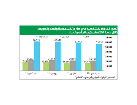أكد تقرير «كامكو» أن القروض الاستهلاكية سوف تكون المحرك الأساسي لأسواق الائتمان في دول مجلس التعاون الخليجي خلال الأعوام القادمة، بالإضافة إلى الاقتراض لتمويل مشاريع البنى التحتية والتجارة وكذلك التمويل العقاري.أصدرت إدارة بحوث الاستثمار في شركة مشاريع الكويت الاستثمارية لإدارة الأصول تقريراً يتناول النظرة الاقتصادية المستقبلية لدول مجلس التعاون الخليجي بناء على توقعات نمو الناتج المحلي الإجمالي لعامي 2011 و2012، بالإضافة إلى تضمنه تحليل النمو في القروض الاستهلاكية في كل من السعودية وقطر والكويت خلال التسعة أشهر الأولى من عام 2011، وأشارت من خلاله إلى توقعاتها المستقبلية لنمو الناتج المحلي الإجمالي في السعودية والكويت وقطر، حيث ستشهد نسب نمو جيدة خلال عامي 2011 و2012 ، قد تصل إلى 29% و7% في السعودية و35% و7% في قطر، أما في الكويت فمن المتوقع أن تصل إلى 25% و12% خلال عامي 2011 و2012 على التوالي.الاقتصاد السعودي: نمو قياسي في 2011وقال التقرير انه رغم المخاطر التي تتهدّد الاقتصاد العالمي في ظل أزمة الديون في منطقة اليورو وعدم التوصل إلى حل جذري لتلك الأزمة وحالة عدم الاستقرار التي تشهدها بعض الدول العربية، شهد الاقتصاد السعودي نموا استثنائياً خلال عام 2011 حيث انعكس بشكل ايجابي على أداء كافة القطاعات والأنشطة الاقتصادية. وتشير توقعات بحوث كامكو لعامي 2011 و2012 إلى أن الاقتصاد السعودي يتجه نحو تسجيل أرقام قياسية في نمو الناتج المحلي الإجمالي ليصل إلى 2.1 تريليون ريال سعودي (560 مليار دولار أميركي) خلال عام 2011 و2.24 تريليون ريال سعودي (597 مليار دولار) لعام 2012 وبنسب نمو 28.7% و6.6% على التوالي. وأوضح التقرير أن هذه التوقعات الإيجابية جاءت نتيجة الأداء الجيد للناتج من القطاع النفطي المتوقع لعام 2011 والذي قد يصل إلى 1.2 تريليون ريال سعودي (312 مليار دولار) وبنسبة نمو 54% عن عام 2010.وأضاف أن التوقعات تشير إلى تحسن أداء القطاعات غير النفطية (خصوصاً قطاعات التصنيع والخدمات المالية والعقار) بدعم من زيادة الإنفاق الحكومي ودعم الحكومة لعدة قطاعات أساسية، وتعتبر هذه الزيادة في حجم الناتج من القطاع النفطي والتي تشكل حوالي 88% من الزيادة في الناتج المحلي الإجمالي لعام 2011 السبب الرئيسي في دفع عجلة النمو والازدهار الاقتصادي في المملكة، حيث يلعب القطاع النفطي (النفط الخام والمنتجات المكررة فضلا عن الغاز) دورا حيويا في الاقتصاد السعودي، كما يشكل الناتج المحلي من القطاع النفطي حوالي 56% من إجمالي الناتج المحلي الإجمالي للمملكة.قطر تستمر في أعلى نسب النمووعن قطر، قال التقرير ان من المتوقع أن تسجل نمواً جيداً في عام 2011 على غرار عام 2010 وذلك على خلفية ارتفاع الطلب العالمي على النفط والغاز الذي قد يدفع باستمرار الوتيرة التصاعدية لأسعار المشتقات النفطية، كما أن الدولة تسعى لتنويع اقتصادها بعيدا عن قطاع النفط والغاز حيث تعتمد في خططها المستقبلية على زيادة الإنفاق على البنية التحتية والقطاعات الإنتاجية والخدماتية، ولتحقيق تلك الأهداف يتم العمل على الإستراتيجية الوطنية للتنمية 2011-2016 التي تقدر قيمتها بـ125 مليار دولار أمريكي، ما يساعد قطر على تحقيق أهدافها على المدى الطويل وتوفير الاستثمارات اللازمة لاستضافة كأس العالم 2022. وبناء على توقعات كامكو للناتج المحلي الإجمالي لدولة قطر، من المتوقع أن يصل إلى 171 مليار دولار في عام 2011 وبنسبة نمو 35% مقارنة مع عام 2010، وبالتالي يصبح الاقتصاد القطري ثالثاً في منطقة الخليج بعد السعودية والإمارات، فيما تأتي الكويت في المركز الرابع، ومن المرجح أن يستمر في النمو خلال عام 2012 ولكن بوتيرة أقل ليصل إلى 183 مليار دولار وبنسبة نمو 7%. وفي تحليل لتوقعات عام 2011، ويتبين أن الناتج المحلي من القطاع النفطي سيساهم بنسبة 63% من الزيادة في الناتج المحلي الإجمالي لدولة قطر.الكويت: نمو جيد في 2011 و2012 مدعوماً من النفطبالنسبة للكويت، توقع التقرير أن يستمر الناتج المحلي الإجمالي لدولة الكويت بالنمو خلال ع