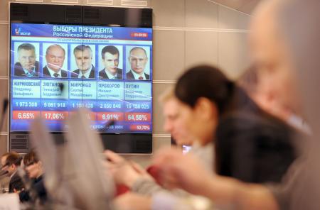 فاز رئيس الوزراء الروسي فلاديمير بوتين في الدورة الاولى من الانتخابات الرئاسية الروسية الاحد وهنأ ناخبيه بقولهم "نعم لروسيا الكبيرة" في حين سارعت المعارضة الروسية الى التنديد بهذا الفوز.
