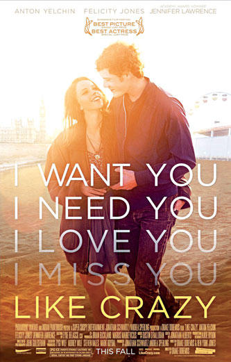 ما رأيكم في فيلم يتناول قصة شاب يلتقي فتاة، فيغرم بها، ثم يخسرها؟ عمل ستكون أحداثه رومنسيةً بامتياز. يرتكز Like Crazy على فكرة الحب إلى درجة أنها طغت على عناصر الفيلم الأخرى كافة، لا سيما النصّ.