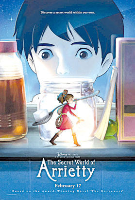 لم يتول هاياو ميازاكي، صاحب Ponyo وSpirited Away وMy Neighbor Totoro، إخراج The Secret World of Arrietty الذي أنتجته شركة Studio Ghibli، ولعل هذا سبب افتقاره إلى اللمسات الحالمة والسحر الفريد الذي لوّن به هذا المخرج الياباني أفضل أعماله طوال عقود.تدور قصة ماري نورتن، التي استوحيت منها أفلام كثيرة طوال السنوات الستين الماضية، حول أناس صغار جداً يعيشون في جدران المنازل القديمة وتحت ألواح أرضيتها. وتُعتبر كل رحلة تبضع مغامرة يحصلون خلالها على مكعب من السكر يدوم أشهراً أو على حبة بسكويت يمكن سحقها لصنع الخبز. يلتزم هؤلاء بقاعدتين أساسيتين في حياتهم: لا يأخذون أكثر من حاجتهم، وعندما يراهم البشر يحين موعد الانتقال، فالفضوليون لا يجلبون إلا المتاعب لتلك المخلوقات الصغيرة.آرياتي (تؤدي دورها بريجيت مندلر من السلسلتين التلفزيونيتين Good Luck Charlie و Wizards of Waverly Place) فتاة في الثالثة عشرة من عمرها تحاول تجاوز حدود عالمها. لا تعرف سوى عائلتها وتأمل في أن يكون أناس صغار آخرون لا يزالون على قيد الحياة في مكان ما. تخرج إلى العراء (يعشق ميازاكي الطبيعة)، فتلفت انتباه الغربان الشريرة التي يمكنها ابتلاعها بسهولة، ويتجسس عليها صبي بشري مريض. يريد شون (يؤدي دوره ديفيد هنري) مد يد المساعدة، وترغب آرياتي في التواصل معه. فلا ترى أن صبياً في مثل سنها يشكل خطراً على عائلتها وتعتبر ألا داعي للانتقال أو حتى إخبار والديها (إيمي بوهلر وويل أرنيت). لكن لا شك في أنهما ينظران إلى هذه المسائل من منظار مختلف. عالم مذهلالألوان الرائعة والتفاصيل الصغيرة التي طالما ميّزت أعمال Studio Ghibli، تظهران بوضوح في فيلم هيروماسا يونيبياشي. فعالم هذه المخلوقات الصغيرة، الذي يعتمد على أغراض يرميها البشر (دبابيس، بكرات خيوط فارغة، براغ، ورق لاصق مزدوج يتيح للأب بود (أرنيت) بتسلق منضدة المطبخ المرتفعة للحصول على السكر)، مبتكر بإبداع مذهل.تؤدي كارول برنيت صوت خادمة مسنة تتوق إلى اليوم الذي تتمكن فيه من الإمساك بأحد هذه المخلوقات الصغيرة، خصوصاً أنها تود تكذيب كل مَن اتهمها في صغرها بـ{الجنون». فتضفي هذه الشخصية بعض اللمسات المرحة على الفيلم. كذلك، ثمة تلميحات إلى وجود مزيد من هذه المخلوقات خارج حديقة الكوخ الصغير. فقد ألفت نورتن في النهاية أكثر من كتاب ضمن هذه السلسلة.لكن الخيارات المتوافرة أمام ميازاكي، الذي شارك في كتابة السيناريو، كانت محدودة: فإما تغادر هذه المخلوقات أو تبقى، إما تُكتشف وتواصل حياتها كالمعتاد أو يُلقى القبض عليها ويُفتضح أمرها. ما من مجال لحبكة رومنسية أو لأخذ هذه الرواية إلى أبعاد أخرى، على رغم أن هذه القصة المذهلة صورت بتقنية «الأنيمايشن». إذاً، يبقى هذا العالم السري واقعياً إلى أبعد الحدود.
