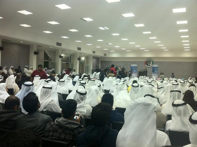 بودره، قال عبدالرحمن الغانم ممثل اتحاد العمال: "نحن اليوم امام مسؤولية تاريخية.. فلنراجع انفسنا لنكمل مسيرة التطور،و لنؤكد تمسكنا بدستور البلاد تصل وروحا"واوضح الغانم، "أننا نحذر كل من يحاول تفريغ الدستور من محتواه او الالتفاف عليه"، مضيفاً "نجد انفسنا مضطرين للتصعيد لتحقيق مطالب العمال في ظل الإهمال الحكومي".وبدوره قال ممثل صوت الكويت علي خاجه "وصلنا الى مرحلة معقدة نتيجة تخاذلنا عن الدفاع عن مكتسباتنا الدستورية، والاصلاح والإنقاذ يأتي من تطبيق الدستور بكافة مواده واهمها مواد الحريات".من جانبه استنكر ممثل جمعية حقوق الانسان عامر التميمي، "توظيف المراهقين في التعذيب الفئوي، كأن يأتي سؤال في اختبار لهم، من اقتحم المجلس؟".وفي كلمة للجمعية الثقافية النسائية،"سنتذكر ماحدث في الـ١٦ من نوفمبر كيوم مشؤوم استخدم فيه العنف لاقتحام المجلس، والاستخدام الحازم للقانون لا يعني قمع الحريات والتعدي على الدستور"وبدوره تحدث ممثل جمعية الدفاع عن المال العام احمد العبيد قائلاً "نستشعر اليوم وبشدة غياب الصوت الثالث وهو صوت العقل امثال المنيس والربيع والخطيب،" مضيفاً " اليوم نعاني من حكومة عاجزة وفاشلة توقف معها حال البلد، فهناك صف ثاني مملوء بالطائفية والقبلية والانتهازية يقوده شخص مطرود من الحكومة".ومن جانبه، قال ممثل الخريجين ابراهيم المليفي، "نعيش أسوأ مرحلة من تاريخنا مليئ بالانقسامات القبلية والطائفية، واقتحام المجلس خطأ كبير ولكن علينا بالسؤال عن مسبباته".واضاف المليفي، "الداخلية جاهدت للقبض على سارق مطرقة الخرافي .. ونحن نسألها عن جهودها المختفية عن احداث ديوان الحربش"، ولفت في رساله للمواطنين قال فيها "الى كل مواطن متمسك بالدستور، أطالبكم بالبحث عن ما يجمعنا لا ما يفرقنا".وفي رسالة أخرى الى كتلة العمل الوطني قال "اطلقوا رصاصة الرحمة حتى ترتاح البلد" وسط تصفيق كبير من الجمهور.وقال ممثل التحالف الوطني راكان النصف، "البلد مختطف من أقلية أسلوبها وقح وهو يا نشتريك يا نشوه سمعتك، ومجلس الامة الحالي إهانة للبلد، وأحيي وزير الصحية هلال الساير من استقالته من حكومة الفساد"بدورها قالت ممثلة التيار التقدمي فاطمة الصقر، "المخرج السياسي للازمة يتطلب التخلص من المنهج السلطوي المتمثل بالمشيخة وإجراء إصلاحات دستورية، ونحمل رئيس الحكومة مسؤولية ما يحدث.. كما نحمل مجلس الامة مسؤولية الفشل في الاصلاح".من جانبه، اكد عبدالله النيباري ممثل المنبر الديمقراطي بأن "رياح الربيع العربي تجتاح كافة الأقطار العربية دون استثناء بما فيها الكويت، وفضيحة الإيداعات المليونية القبيحة استفزت كافة أطراف المجتمع،الربيع الكويتي لا يطالب بإسقاط النظام، بل يطالب بإصلاحات من خلال النظام وفي اطار الدستور" واضاف النيباري، "نحن بحاجة اليوم الى إصلاح سياسي عميق الى جانب محاربة الفساد، ومطالبتنا برئيس حكومة شعبي هو حماية للأسرة الحاكمة وليس تجريحا لهم".عبدالله الرومي، "للأسف ان يسود نظام الفزعة في الكويت بعد ٤٩ سنة من الدستور بدلا عن نظام القانون، والأداة الرقابية اليوم انتهت في ظل هذه الحكومة وهذا المجلس، وجميعنا يحرص على تنظيف البلد من الفساد.. ونتأثر لإسقاط اقتراح انتداب عضوين للبنك المركزي"واضاف الرومي،"في ظل حكومة بهذا الوضع لا اعتقد اننا يمكننا التعاون معها..الجلوس في بيوتنا اشرف من القسم على حفظ الدستور دون قدرتنا على ذلك"من جانبه، قال مرزوق الغانم، "نحن امام معركة شرسة لتصفية الحسابات وتناسينا المحبة التي كنا نعيشها، ونحن كتلة العمل الوطني نتعهد بتمثيل الصوت الثالث .. الاغلبية الصامتة،، صوت العقل، ولدينا القدرة بان نقول بان إسقاط الاستجواب اعتداء سافر على الدستور .. وان نقول بان اقتحام المجلس خطأ"وأضاف الغانم،"قدمنا اقتراح لتحصين المجلس النيابي، فوجدنا حكومة متخاذلة بتصويتها ضد الاقتراح، ووجدنا كتلة "المقاطعة" منسحبة،لا زلنا نطالب بحكومة جديدة ونهج جديد ورئيس جديد، وحتى الاستجوابات ا