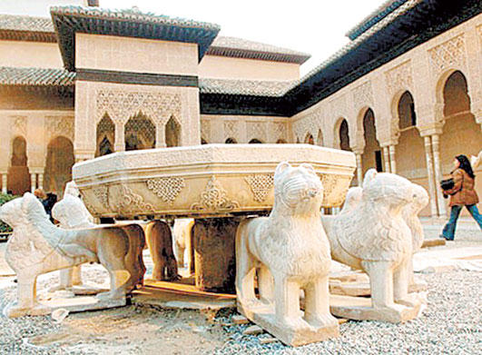 أسود قصر الحمراء الرخامية الأثرية تعود إلى مكانها في الأندلس