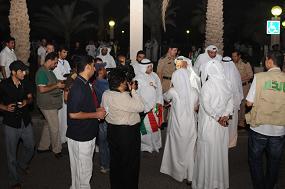 * الوعلان : موقفي الثلاثاء الماضي كان لمصلحة الكويتوسط هتافات " الشعب يريد إسقاط الرئيس"، وبحضور أمني كثيف في مختلف شوارع العاصمة وخاصة في الشوارع المؤدية إلى ساحتي الصفاة والارادة، بدأت ندوة تجمع ساحة الارادة.بداية قال عريف الندوة : نحن ضد دولة ناصر المحمد ودولة أحمد الفهد ونحن هنا لإستقاطهما، مضيفا " نحن نخلي مسؤوليتنا عن أي هتافات غير دستورية.من جانبه قال النائب السابق د. فهد الخنه : اشكر حضور النائب العنجري من بد جماعته، وينكم يا كتلة العمل الوطني عن المحمد؟ والرجال أفعال وليست اقوال، ونريدك يا أسيل العوضي لإستجواب التنمية القادم يا أرجل من أشباه الرجال، وكيف يبقى رئيس الوزراء بعد أن أصدر شيك لأحد النواب؟ وعلت هتافات " ارحل يا ناصر ارحل".وأضاف الخنة لقد نصبنا المنصة بهذا الشكل لكي نعطي مجلس الأمة ظهرنا لأنه ما يمثلنا بل هذه الساحة هي التي تمثلنا.وتحدث ممثل الحركة السلفية فهيد الهيلم قائلا : الطراثيث هم الذين يباعون ويشترون، وليس أهل الكويت الأحرار، ونقول لسمو رئيس الحكومة بدل أن تذهب للقضاء راشيا، ذهب فيصل المسلم مظلوما، وقد نعت تافه الكويتيين بالتافهيين في زمنك يا ناصر المحمد، من جانبه قال النائب مبارك الوعلان أن موقفه الثلاثاء الماضي كان موقف في مصلحة الكويت ولم يتوقف عند موقفهم من استجوابه السابق. من جهته قال ممثل (حدس) محمد الدلال: هذه الألاف المؤلفة ترد على ناصر المحمد في جمعة الرد، في تعطيل الجلسات، في محاولة تفريغ الدستور من محتواه وتعطيل البرلمان أكثر من مرة وإذا أردنا أن نخرج من المأزق الذي نعيشه يجب أن يكون للشعب مبادرة سياسية واضحة.بدوره حذر النائب عبدالرحمن العنجري من أن عدم وجود اصلاحات دستورية سيكون صراع أبناء الأسرة أشبه بسرطان ينهش في جسد البلاد، مضيفا " وسوف نفكر بالملكية الدستورية ونحن بإنتظار عودة سمو الأمير لحل الحكومة والمجلس، فإما يكون الاصلاح من الحاكم أو الشعب ، مشددا على أن الكويت ليست دولة عشائر وقبائل وعوائل بل دولة ديمقراطية دستورية.وقد بدأ توافد النواب والقوى الشبابية باعداد كبيرة في ساحة الارادة للمشاركة في "جمعة الرد" وسط تنظيم من القائمين على التجمع وتأهب امني شديد، حيث قدر عدد الحضور بـ 700 شخص بينهم حوالي 17 امرأة، ولوحظ غياب لافت للحضور الأمني المكثف واقتصر حضور قوة رجال الداخلية في ساحة الارادة على اعداد بسيطة من رجال الأمن الذين تجمعوا عند المدخل الرئيسي لمواقف الساحة بينما كان هناك تواجد أمني كثيف عن ساحة الصفاة وتم اغلاق جميع المنافذ المؤدية إليها.وحضر النواب مبارك الوعلان ووليد الطبطبائي، فيما حضر النائب السابق فهد الخنه، وسط حضور اعلامي كثيف للقنوات الفضائية ووسائل الاعلام المختلفة وتنظيم شبابي عالي المستوى، مع اعداد منصة للمتحدثين.ووصل النواب مسلم البراك وفيصل المسلم وفلاح الصواع وجمعان الحربش وعبدالرحمن العنجري، حوالي الساعة الثامنة والنصف، فيما حضر النواب محمد هايف وخالد الطاحوس وضيف الله بورمية حوالي الساعة التاسعة مساءا.وشاركت مجموعة من المحامين بلباس المرافعات في المحاكم وسط ترحيب الحشود بالهتافاتوكانت القوى الشبابية قد دعت إلى التجمع في ساحة الإرداة للمطالبة برحيل رئيس مجلس الوزراء الشيخ ناصر المحمد وأعضاء حكومته، وتعيين حكومة جديدة، برئيس جديد ونهج جديد، فيما أعلن عدد من النواب وتيارات سياسية تلبية دعوة القوى الشبابية.يذكر أن 'جمعة الرد' سميت بذلك للرد على تصريح رئيس مجلس الوزراء الشيخ ناصر المحمد السبت الماضي والذي قال فيه 'نحن كحكومة علينا ان نسمع الجميع, انما تحريك الشارع ليس من الديمقراطية لأن هناك مؤسسات يستطيع النواب عبرها قول ما يريدون, وهم ربما يحركون من يعملون معهم او بعض اصدقاء هؤلاء, وكلهم ليسوا بالاعداد التي تعكس رغبات عموم الناس, فالشعب الكويتي اكثر من مليون نسمة, وعندما يتحرك الف او 500 أو حتى 2000 منهم فهذه ليست ارادة الشعب كله, انما هي ارادة القلة القليلة, ونحن نتعامل معهم كمواطن