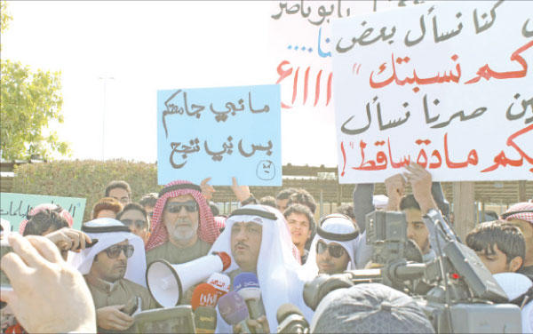 اعتصم عدد من أولياء الأمور والطلبة أمام مبنى وزارة التربية، بحضور عدد من المرشحين، للمطالبة بوضع حلول لقضية الرسوب وتدني نسب النجاح في اختبارات الفترة الدراسية الثانية للمرحلة الثانوية، التي حولت بيوت الكويتيين إلى «مناحات».في ظل غياب تام من قياديي وزارة التربية ووسط حضور النواب السابقين مسلم البراك وخالد الطاحوس ومحمد الخليفة، تجمع نحو 70 شخصا من الطلبة واولياء الامور، للتعبير عن رفضهم واحتجاجهم على تدني نسب النجاح، وصعوبة الاختبارات التي تمت في الفترة الدراسية الثانية.بداية، تحدث النائب السابق مرشح الدائرة الرابعة مسلم البراك قائلا: «إن وزارة التربية تعمدت تخفيض نسب نجاح الطلبة من خلال وضع اختبارات صعبة لتقليل فرص دخولهم الى الجامعة»، مشيرا الى ان هذا النهج هو ديدن الحكومة في الهروب من المشاكل وعدم ايجاد الحلول الجذرية لها.وقال البراك، في تجمع للطلبة وأولياء امورهم امام مبنى وزارة التربية صباح امس، «إن بيوت الكويتيين تحولت الى مناحات بدلا من الفرح بسبب اختبارات التربية، وفوجئنا بتصريحات الوزير المليفي باتهامه من احتجوا على هذا الموضوع بأنهم اعداؤه من البعثيين»، لافتاً إلى أن «إلصاق التهم وتوجيهها إلى اولياء الامور لابعاد المسؤولية عن قيادات التربية امر مرفوض تماما».الإعلام الرسميوأشار البراك إلى أن وزير التربية المليفي، وكما هي عادة حكومته بمجاراة قنوات الاعلام الفاسد، خرج ليتحدث من خلال احدى القنوات الخاصة التي تعرف بقناة «الفتنة»، على حد وصفه، وعبر الرسائل الهاتفية بينما كان ينبغي أن يناقش الموضوع من خلال الاعلام الرسمي، مؤكدا أن الاتهامات التي اطلقها خطيرة جدا، وعليه اما نفيها أو تحمل تباعتها.واضاف: «كالعادة لم نشاهد اي مسؤول من الوزارة يخرج لنا لنبحث معه هذه المشكلة، لعلمهم أن النظام به خلل، وادى الى تراجع الطلبة»، مشيرا إلى انه «بكل أسف القيادات التربوية من النساء، كوكيلة الوزارة تماضر السديراوي ووكيلة التعليم العام منى اللوغاني، لم يكلفا نفسيهما عناء مخاطبة تلك الجموع التي تطالب بإنصافها من هذا الظلم الواقع عليها».وزاد ان «هناك مشكلة حقيقية في وزارة التربية ولن نسكت عنها»، متسائلا: «هل يعقل أن يترك مصير أبنائنا الطلبة في ايدي هؤلاء الذين عجزوا مرارا وتكراراً عن حل مشاكل الطلبة؟»، لافتاً إلى ان نسبة النجاح لم تبلغ 48 في المئة.وندد بانتشار ظاهرة الدروس الخصوصية التي اعتبر ان سببها الرئيسي هو إهمال وزارة التربية لدورها المحوري في العملية التعليمية، مشيراً إلى ان «الظاهرة باتت على العلن دون رقابة أو حساب».حكومة فاشلة وعن تصريح الوزير المليفي الذي قال فيه «انه كان ساقطاً في الثانوية» قال البراك: «إذا كان هو ساقطاً والاسئلة من داخل المنهج، فهؤلاء الطلبة رسبوا والاسئلة من خارج المنهج، ونحن نعتقد أن ما يحدث نتيجة حكومة فاشلة، ولم تستطع توفير المقاعد الدراسية في الجامعة فلجأوا إلى هذا الحل بإسقاط مجموعة كبيرة من الطلبة لتقليل الضغط على الجامعة»، ضارباً مثلاً بأن «الحكومة لو واجهت في يوم من الايام مشكلة أسرة المرضى فستلجأ إلى قتلهم للتخلص من المشكلة».وتساءل عن السر وراء طلب المليفي لقاء وفد من أولياء الامور رغم تصريحه بأن الاختبارات انتهت ولا رجعة في النتائج، فلماذا يكون اللقاء في هذه الحالة؟ مشددا على التزامه بمتابعة هذه القضية لرفع الظلم عن الطلبة.وأكد ضرورة أن يعمل المجلس القادم على التصدي لتخبط وزارة التربية، متوعداً بتشكيل لجنة تحقيق شاملة لمعرفة الحقيقة ومحاسبة المقصرين، داعياً النواب إلى «التجمع يوم 12 فبراير المقبل أمام مبنى الوزارة لقول كلمة الحق والمطالبة بمحاسبة قيادات التربية بدءا بالوزير المليفي ووكيلة الوزارة تماضر السديراوي ووكيلة التعليم العام منى اللوغاني». وشدد على ضرورة إيصال الرسالة لسمو رئيس الوزراء حتى يعلم ماذا يفعل وزراؤه، مضيفا «إذا لم تحل المشكلة فسنعتصم امام منزل رئيس الوزراء حتى تحل أو يرحلوا».ال