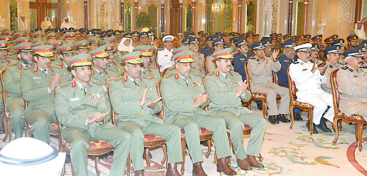 استقبل سمو امير البلاد الشيخ صباح الاحمد بقصر بيان صباح أمس بحضور سمو ولي العهد الشيخ نواف الاحمد قادة وضباط الجيش والشرطة والحرس الوطني.وحضر المقابلة نائب رئيس الحرس الوطني الشيخ مشعل الاحمد وسمو الشيخ جابر المبارك رئيس مجلس الوزراء والنائب الاول لرئيس مجلس الوزراء وزير الداخلية الشيخ احمد الحمود ونائب رئيس مجلس الوزراء وزير الدفاع الشيخ احمد الخالد ونائب وزير شؤون الديوان الاميري الشيخ علي الجراح.