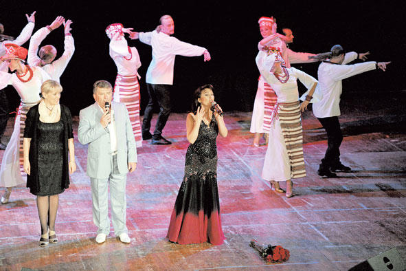 كانت بداية الحفل مع المطرب الأوكراني بوغدان ستاشكيف وهو مطرب شعبي مولود في عام 1957 في المنطقة الجبلية في غرب أوكرانيا، وله مساهمات مهمة في الغناء الأوكراني منحته العديد من الأوسمة، وأكسبته لقب المطرب الشعبي الأوكراني، وعمل على نشر الأغنية الأوكرانية في أرجاء العالم حيث زار معظم بلدان قارتي أوروبا وأميركا الشمالية، مقدماً ألواناً جميلة من الإرث الغنائي المتنوع، وقد غنى بوغدان ستاشكيف عدة أغنيات في الحفل أنصت لها الجمهور وتفاعل مع موسيقاها، مبهراً الجمهور بقوة صوته والأداء المتزن.وعقب انتهاء وصلة المطرب بوغدان ستاشكيف، اعتلت المطربة الأوكرانية ناديا كروتوفا المسرح وعقب تحية للجمهور بدأت وصلتها الغنائية، مقدمة مجموعة من الأغنيات استحسنها الجمهور وصفق لها كثيراً. يذكر أن المطربة ناديا كروتوفا المولودة في عام 1962 خريجة المعهد الثقافي بمدينة كييف الأوكرانية قسم الكورال وقيادة الأوركسترا، وبعد عدة تجارب مع مطربين أوكرانيين نالت في عام 1998 لقب المطربة الشعبية لأوكرانيا. وتميزت فقرتها بتفاعل الجمهور معها، الذي وقف احتراماً لها وهو يصفق معبراً عن تقديره لأدائها الجميل.استعراضشاركت في الحفل فرقة رقص الباليه جيتيا التي تديرها وتشرف عليها الفنانة إيرينا مازور الحائزة لقبَ الجدارة لأوكرانيا، وتعتبر الفرقة التي استمرت ملتحمة طوال 25 سنة إحدى أفضل الفرق في أوكرانيا، وكان أداء الفرقة في الحفل رائعاً أثناء غنائها لفقرات منفردة تميزت برقص الباليه ومشاركة الفنانين في الغناء والرقص.