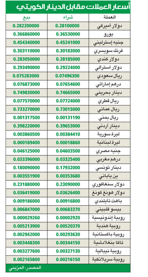 أسعار العملات مقابل الدينار الكويتي