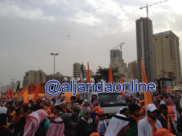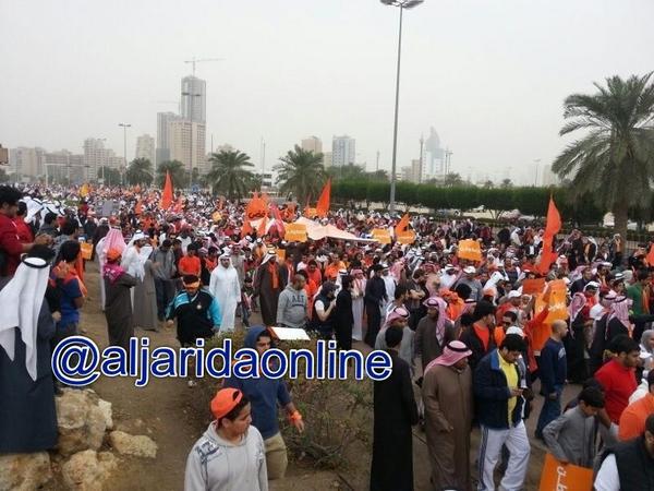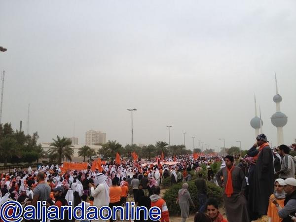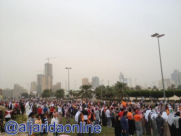احتشد آلاف المواطنين في شارع الخليج العربي عصر اليوم في مسيرة كرامة وطن الرابعة والتي انطلقت من عند فندق السفير وانتهت عند أبراج الكويت.