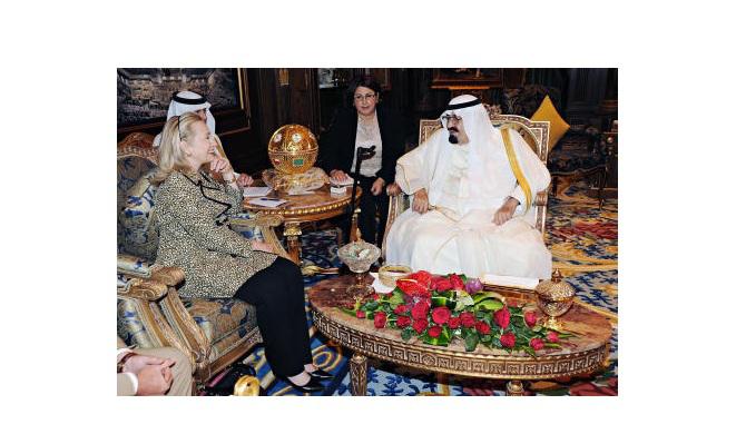 اعلن مصدر رسمي ان العاهل السعودي الملك عبد الله بن عبد العزيز بحث مع وزيرة الخارجية الاميركية هيلاري كلينتون الجمعة في الرياض التطورات الاقليمية والدولية.